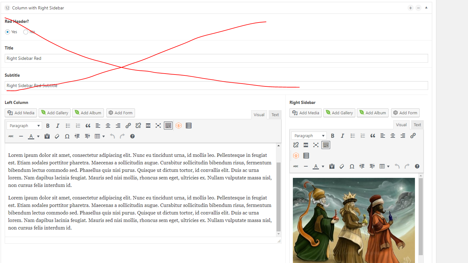 There should not be an option for the red header on the left and right sidebars ACFs.