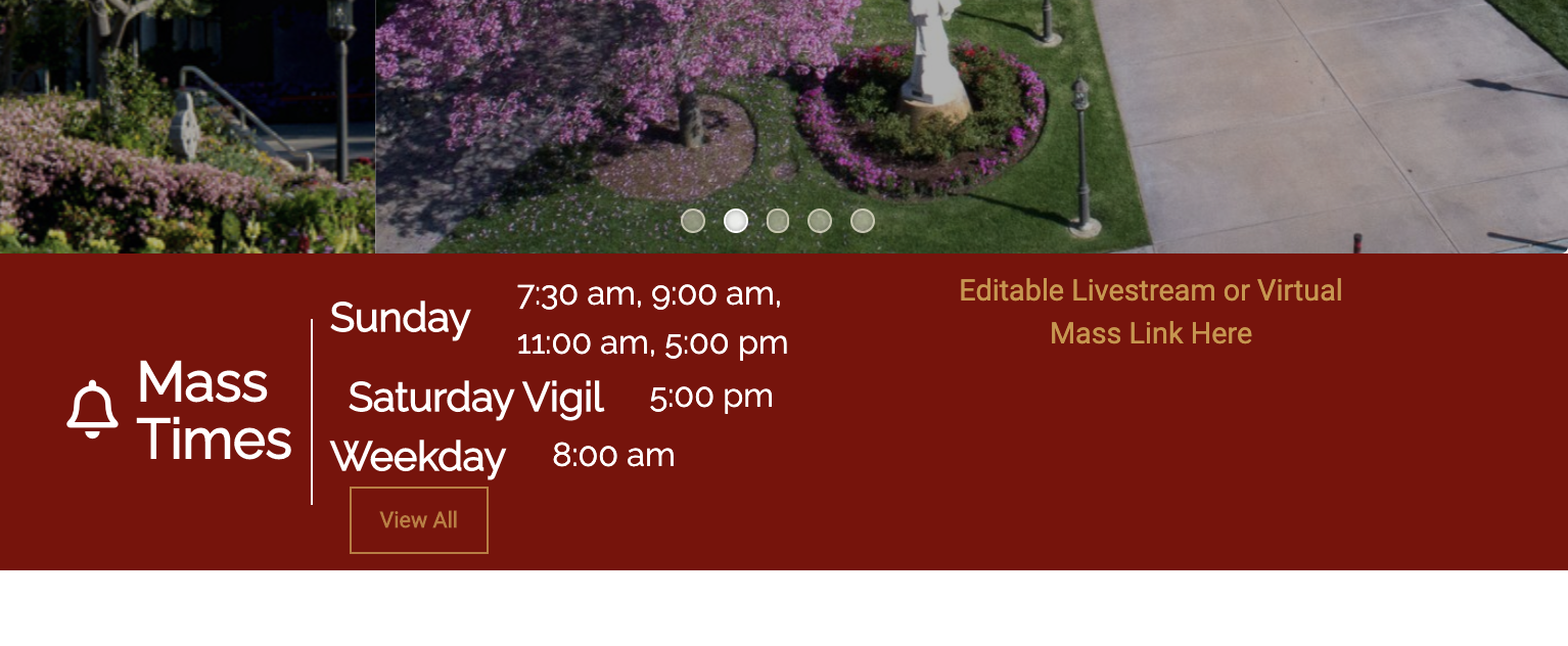 ✔ Mass Times - Make red bar taller and add a field for line of text (editable) with link (editable) underneath Mass Times for them to announce & link over to LiveStream Masses