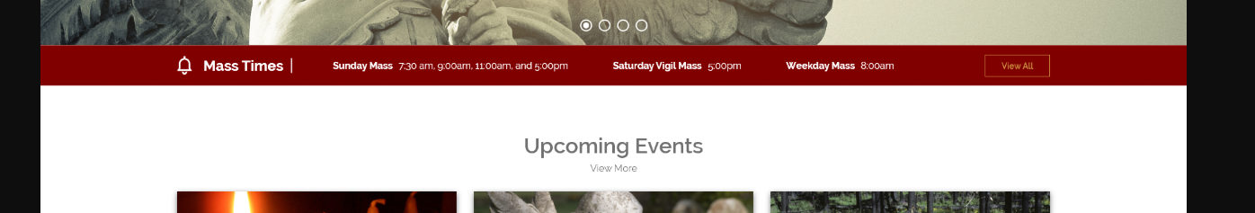 ✔ Shrink the red Mass Times ribbon on the homepage. See attached image. Add the bell icon that's in the Media Library. Red area should be 1/3 - 1/4 of what's current.