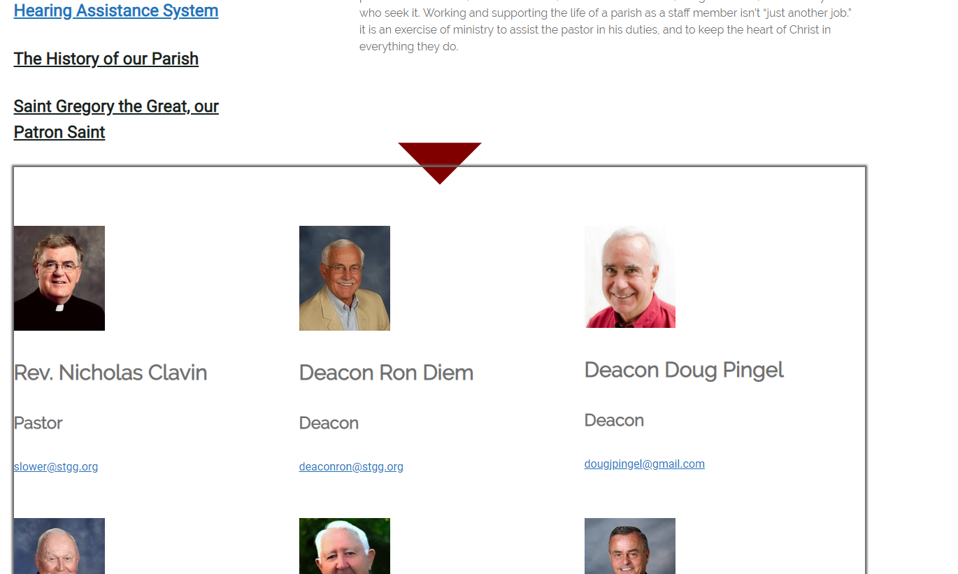 ✔ Staff page - https://stgg.diocesanweb.org/welcome/clergy-staff/