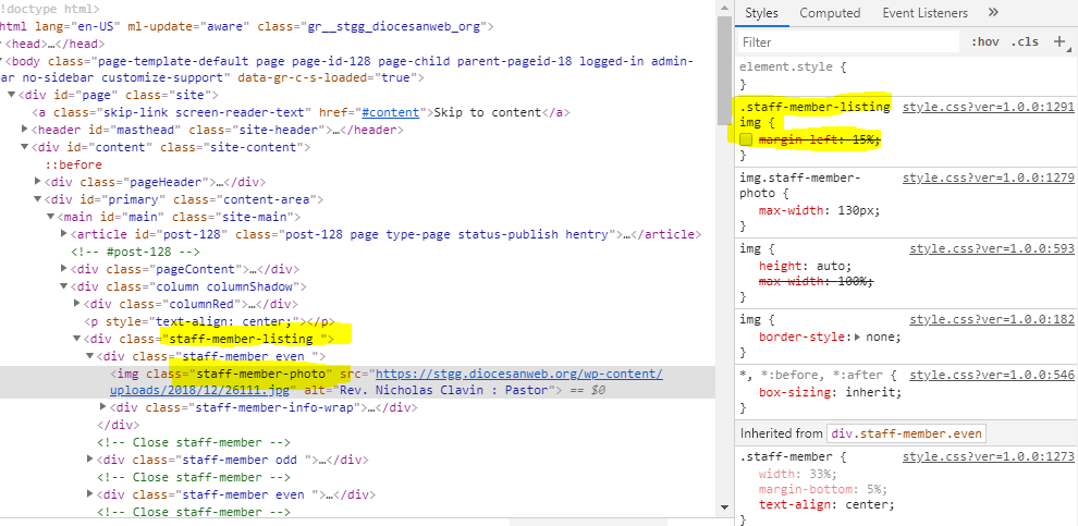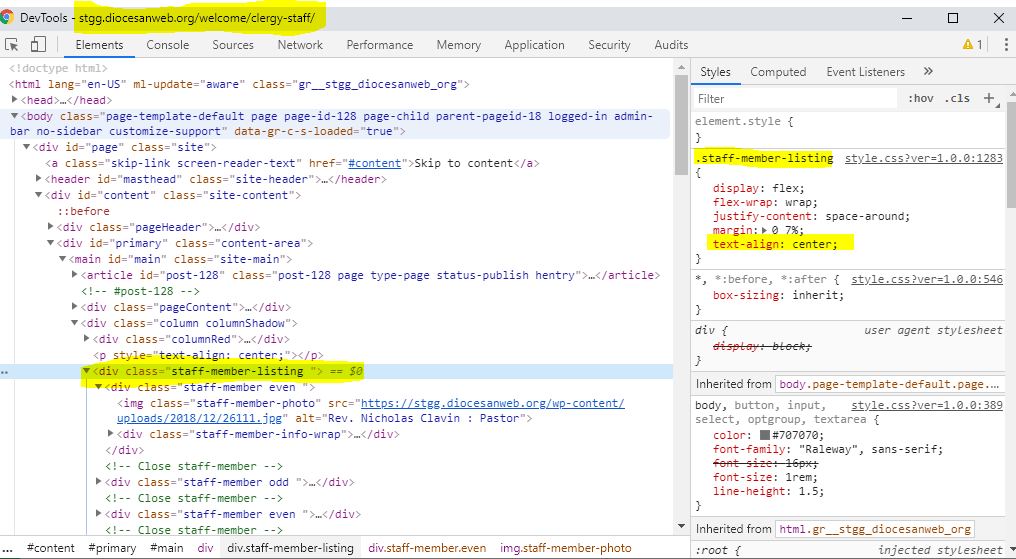 My changes were overwritten, so it looks like before. Included the changes that need to be made. Two changes to make them align perfectly center. I'll let you make them, so they aren't overwritten. :) Thank you. https://stgg.diocesanweb.org/welcome/clergy-staff/