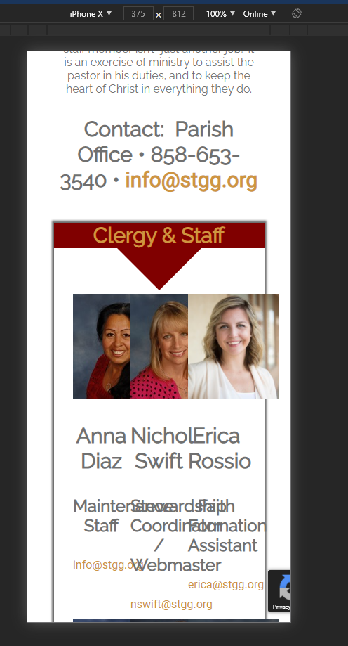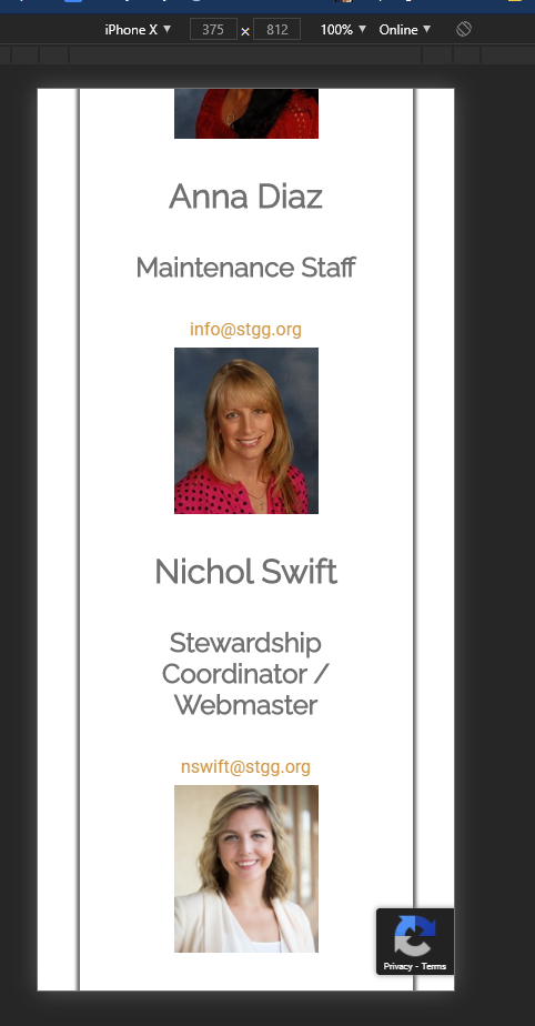 ✔ Staff Page - Staff should stack & Reduce the spacing between the picture, Name, Position and email