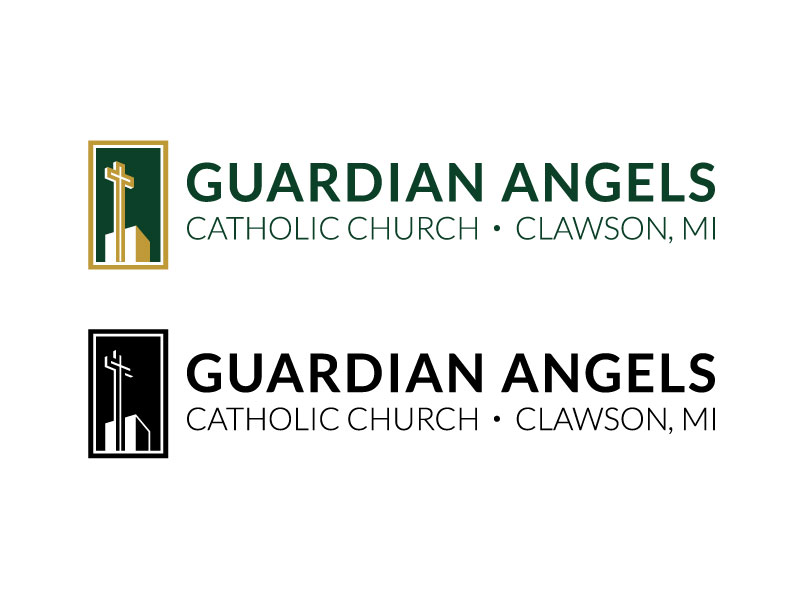 I have another version of the logo based on the picture you had sent me. I really like how it ended up turning out (even if it doesn't use the whole image or textures) This minimized logo still show one of the tallest most prominent pieces of your parish, and I feel visitors and current parishioners will be able to recognize it well! I have a proof of it in color and in black. We would represent the logo in white on the website in most places.