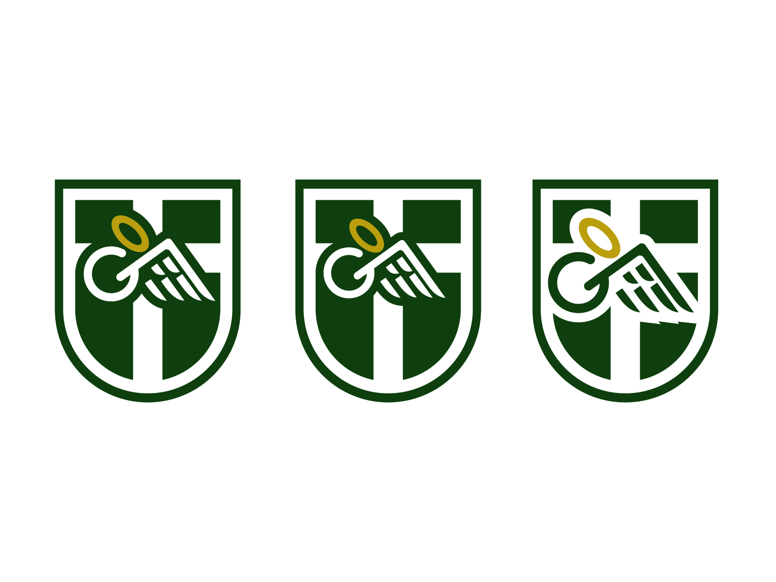 Church - Simplified, Uses the GA for guardian angel, and shield in the back. Modernized a bit similar to the Archdiocese of Detroit with the thicker outline.