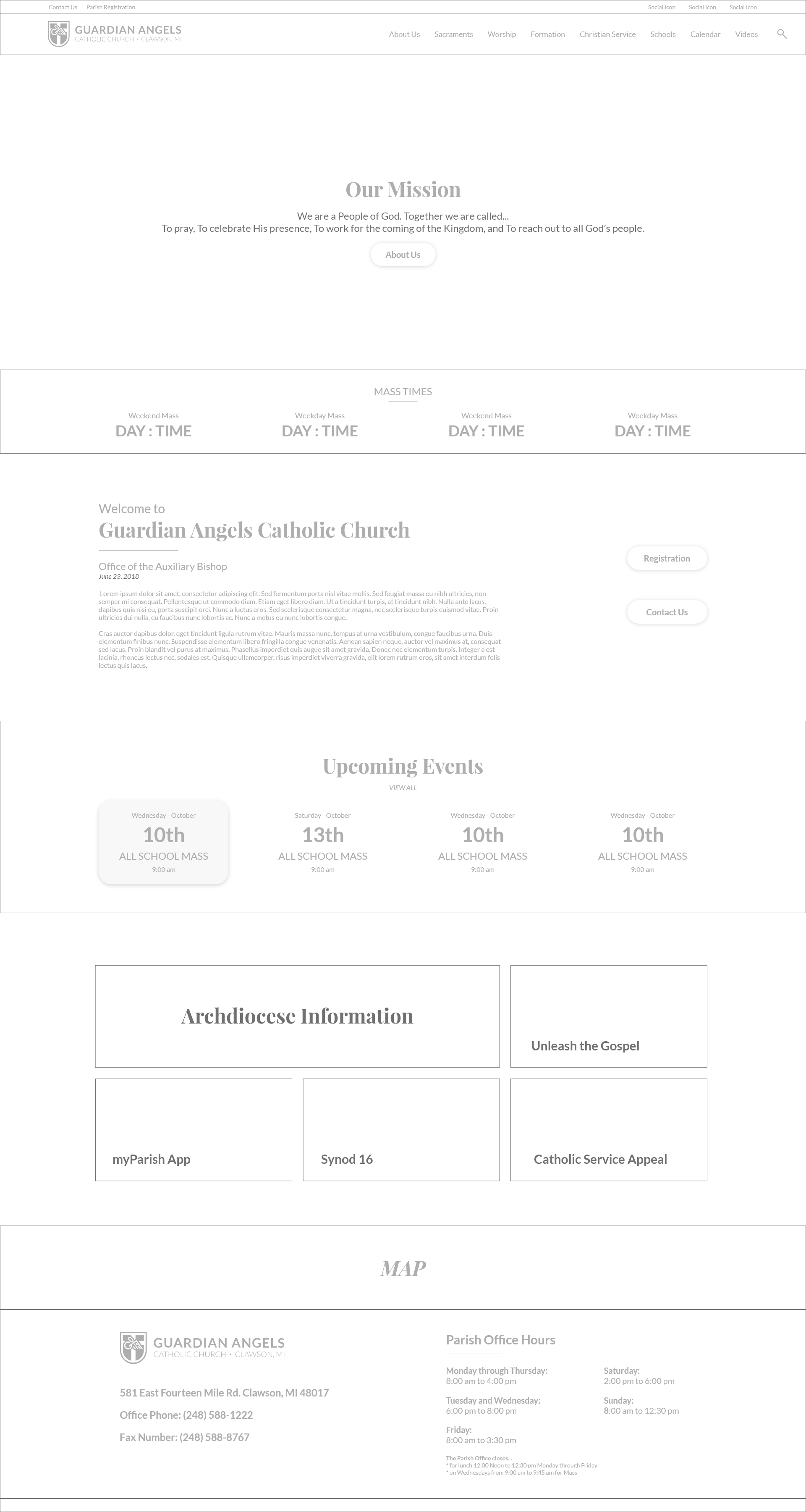 Here is the parish one as well. We can discuss in detail the functionality of each section tomorrow. once we get those details covered I will add color and images to liven up the proof.