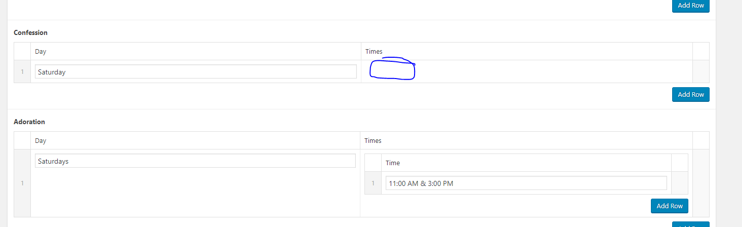 ✔ Confession Time ACF, not in backend, needs to show up on front-end too