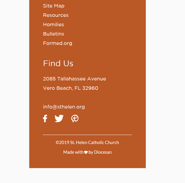 ✔ Footer - Stack the Site Info section, copyright on top, Diocesan info on bottom