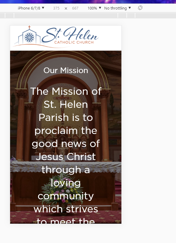 The subtitle text ("The Mission of St. Helen....) is a little too big right now, please shrink it some. https://xd.adobe.com/spec/8590cd44-51d7-4ca5-4fac-68c703340700-f3a1/screen/7626e22b-e264-42b0-8a41-7399516bffb8/iPhone-6-7-8-1