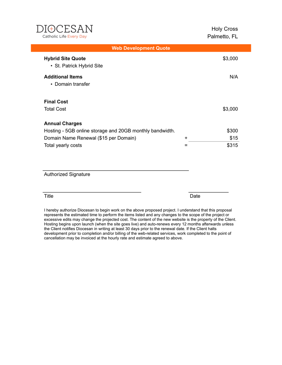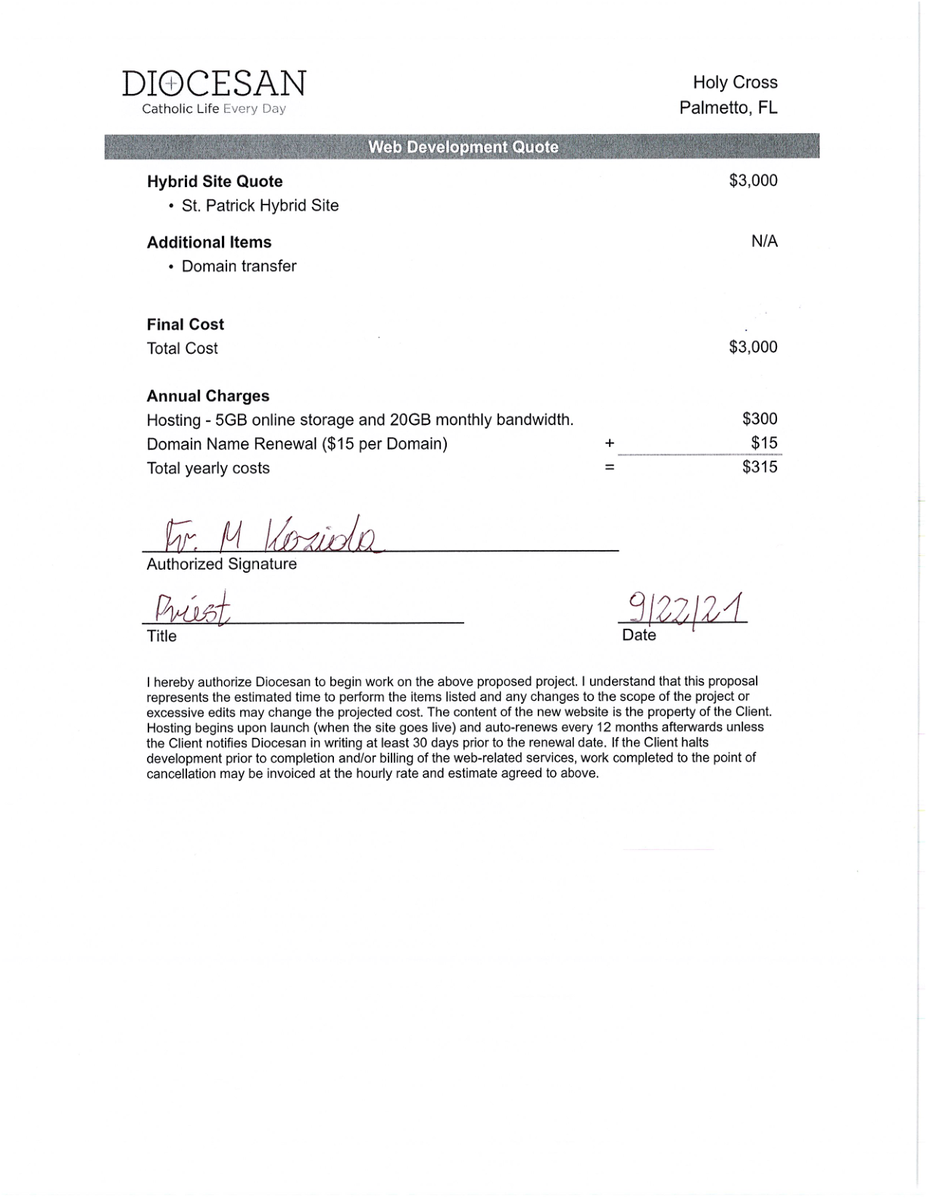 Subject: Re: (Holy Cross - Palmetto, FL) Website Proposal