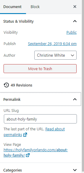 Do we have the capability of editing URLs with this site? Not just the last part, but everything after the holyfamilyorlando.com/ ?