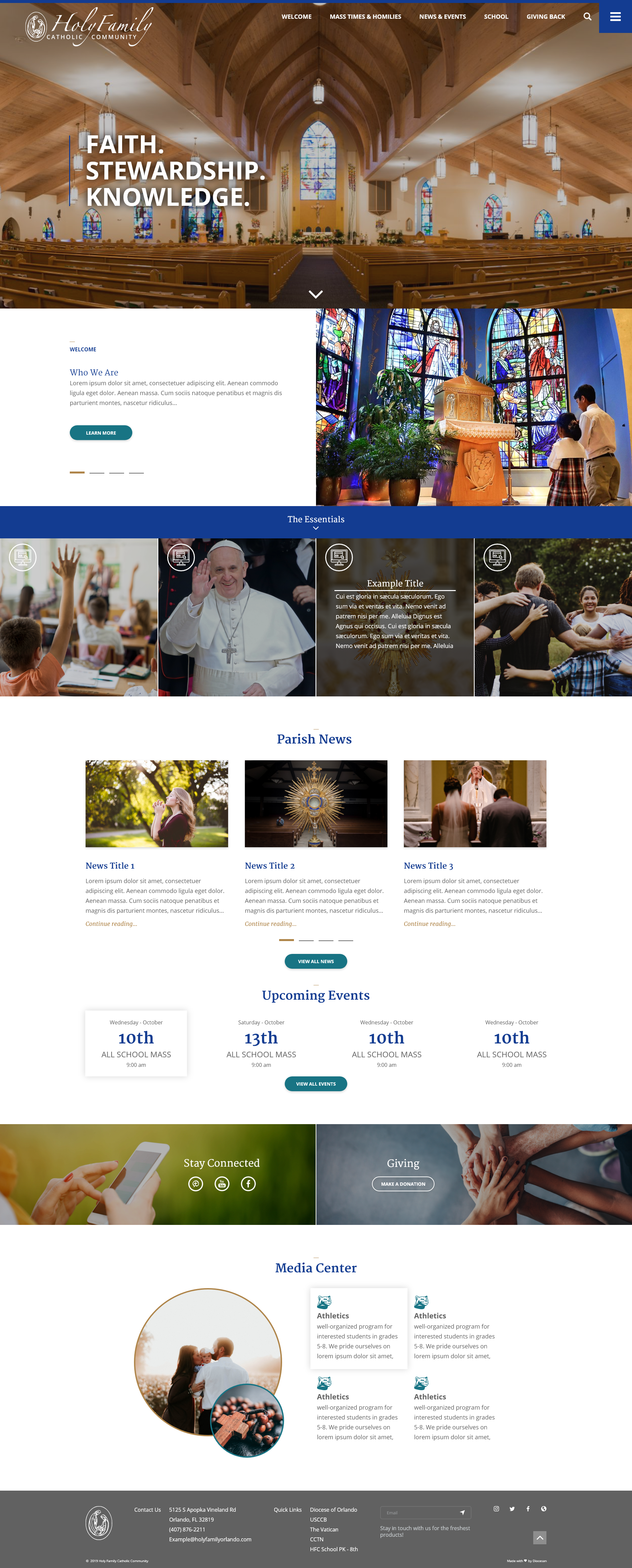 Here are all of the different options we spoke about regarding the "Faith. Stewardship. Knowledge." text in the header of the new website. I have the 3 options for the full view and the 2 options for the mobile. Let me know which of the options you like in both styles.