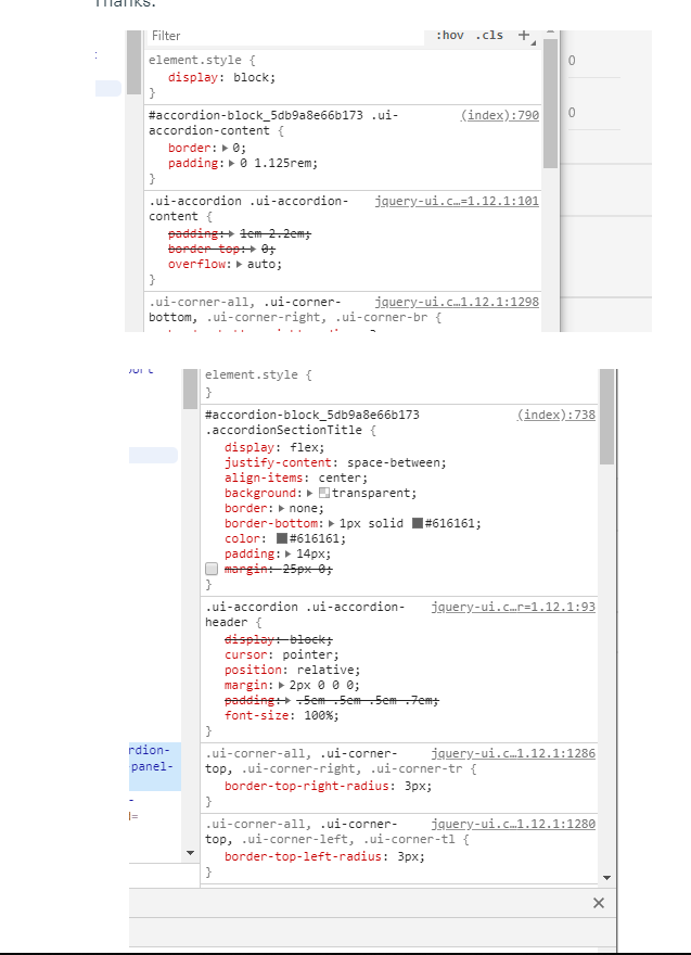 Sorry, these were the changes. Blake got these approved like a month ago and sent me screenshots of the accordion css that they approved. Otherwise I would have attached pictures, sorry!