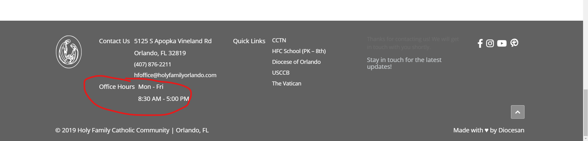 ✔ Footer - Add Office Hours from Theme Settings under Contact Info