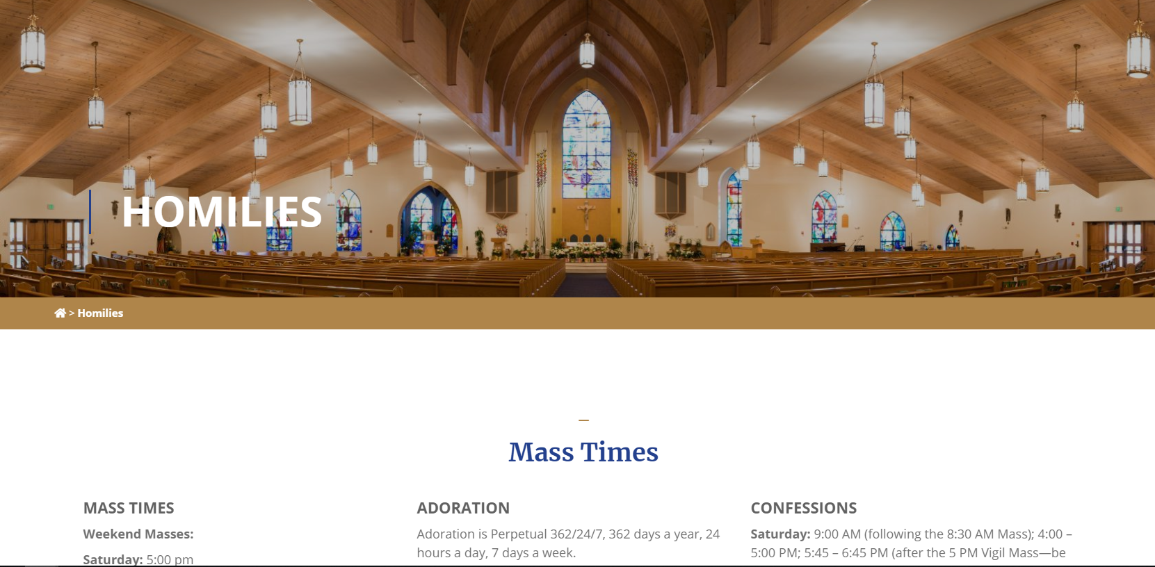 ✔ Homilies Page Title - Should say Mass Times & Homilies, not just Homilies