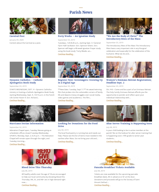 Currently, this follows the Sacred Heart (GR) style with Upcoming Events, myParish and Bulletins followed by their Facebook Feed.