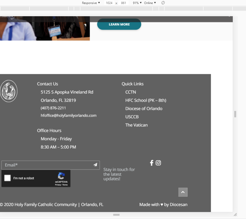 Kyle Sullivan, Web Development This is almost certainly tied to All Ministries template plinkos are cut off - Holy Family & CCTN - Orlando, FL for Holy Family Catholic Church Orlando Staff. Jan 21, 2020 at 2:03 PM Notified 1 person
