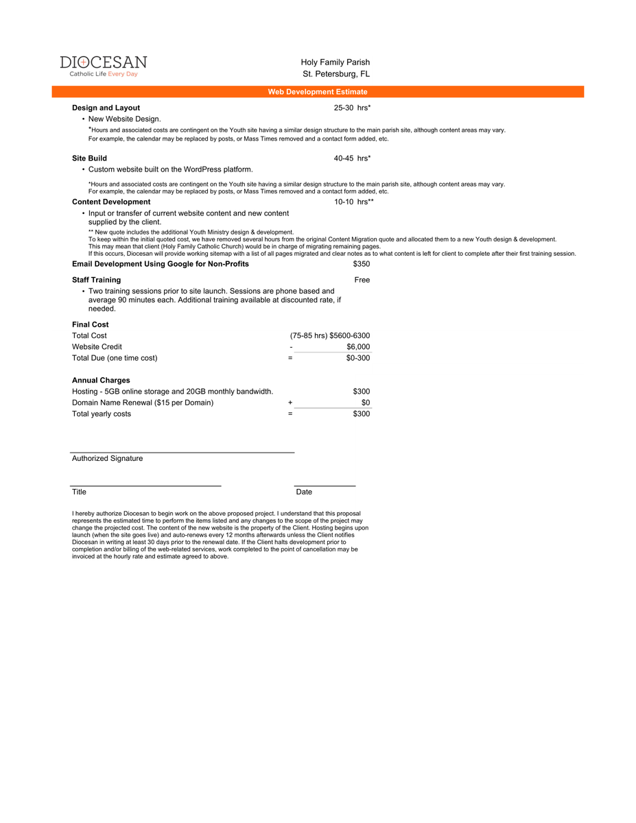 I also wanted to let you know that I am leaving Diocesan for another opportunity and my last day is tomorrow. Feel free to email me until then, but otherwise, I will attach Gary Smith (our web department director) and Veronica Alvarado (our project manager) to this email so you can contact them after Thursday if you need anything. :)