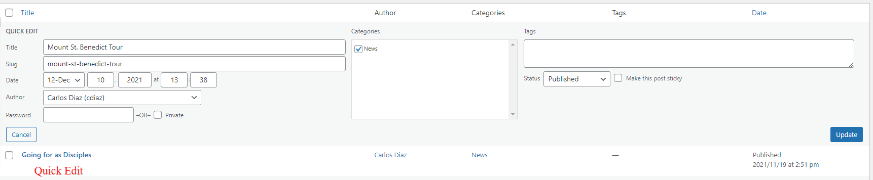 On our parish side, under news, is there a way (or can there be) to place news articles in different order. Right now it seems that I would need to delete a news article and remake it to show first.
