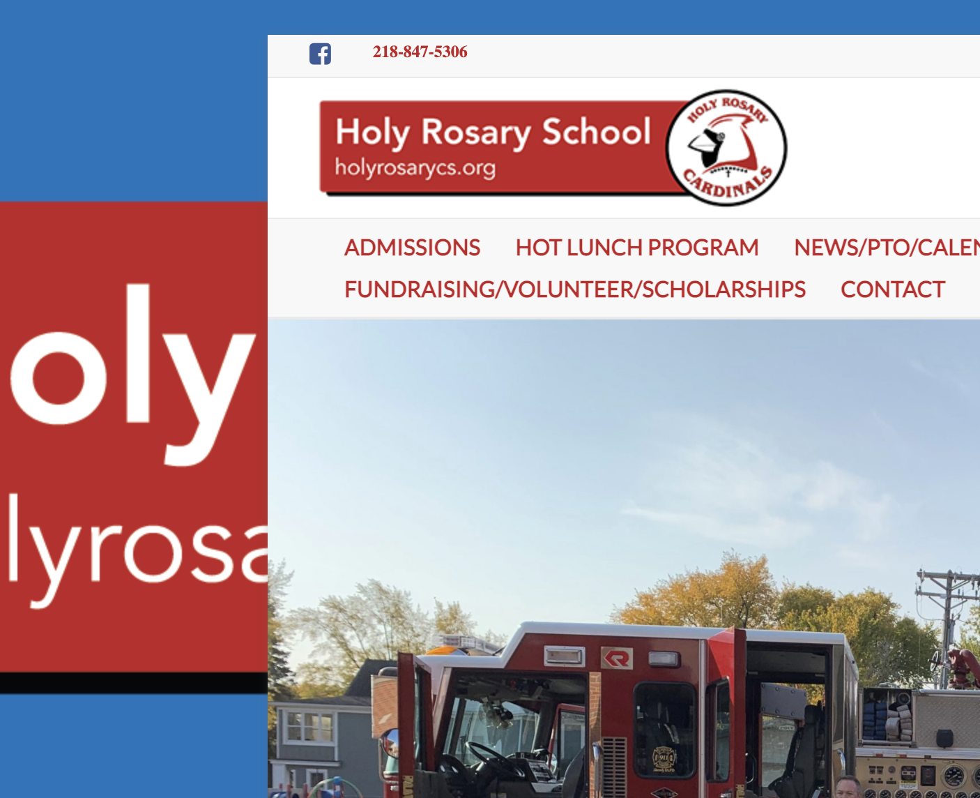 Blake, The school side will remain with their school colors of red, white and black. The church side will be in the blues for the Holy Rosary. This picture is what we use on our letterhead, but we also took it off of the internet- (google images)