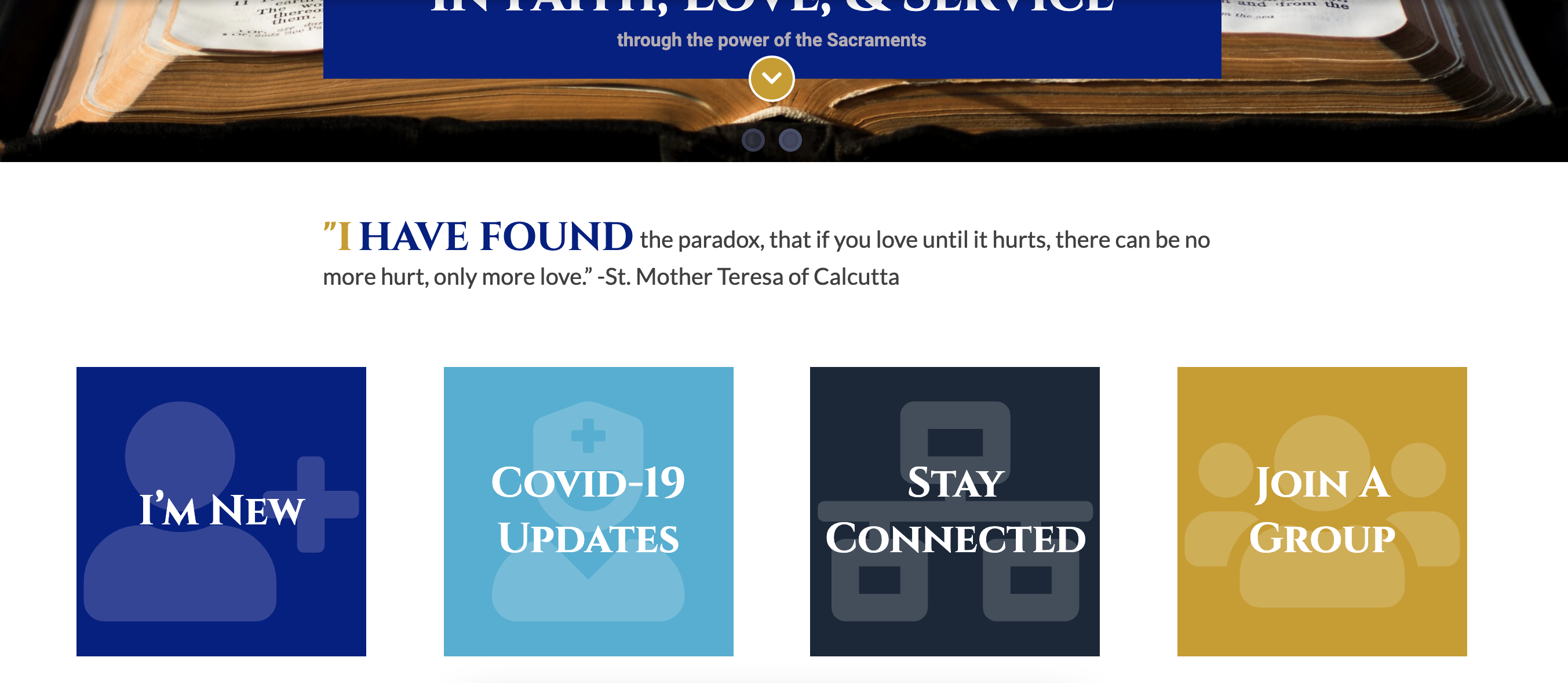 * Interestingly, when Sandra was looking at the site with Fr. Sullivan, and she scrolled over the tabs in the header and rested on an item, the font in the Church name at the top left turned from white to blue. That does not happen when I view the site, but Sandra and Fr. Sullivan would like to keep that.