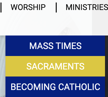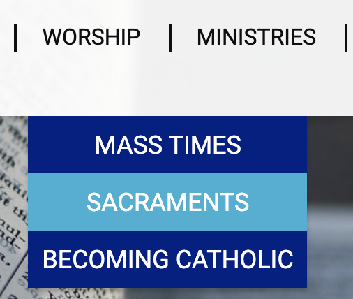 Also, I am not sure if Sandra is still seeing it, but she mentioned that in the drop down menu, when she puts her mouse over an item like, Mass Times, the font in the name of the Church changed to blue. I do not see that when I do it, But Sandra and Fr. Sullivan really liked that. Please let me know if that is happening in this latest version.