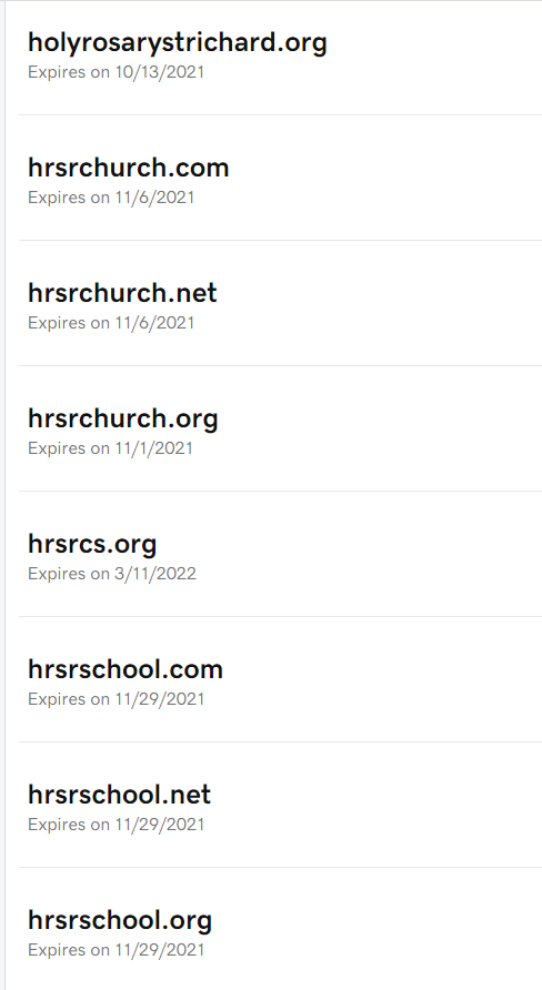 Below please see the domain we own. The hrsrchurch.org (http://hrsrchurch.org) is one of them.