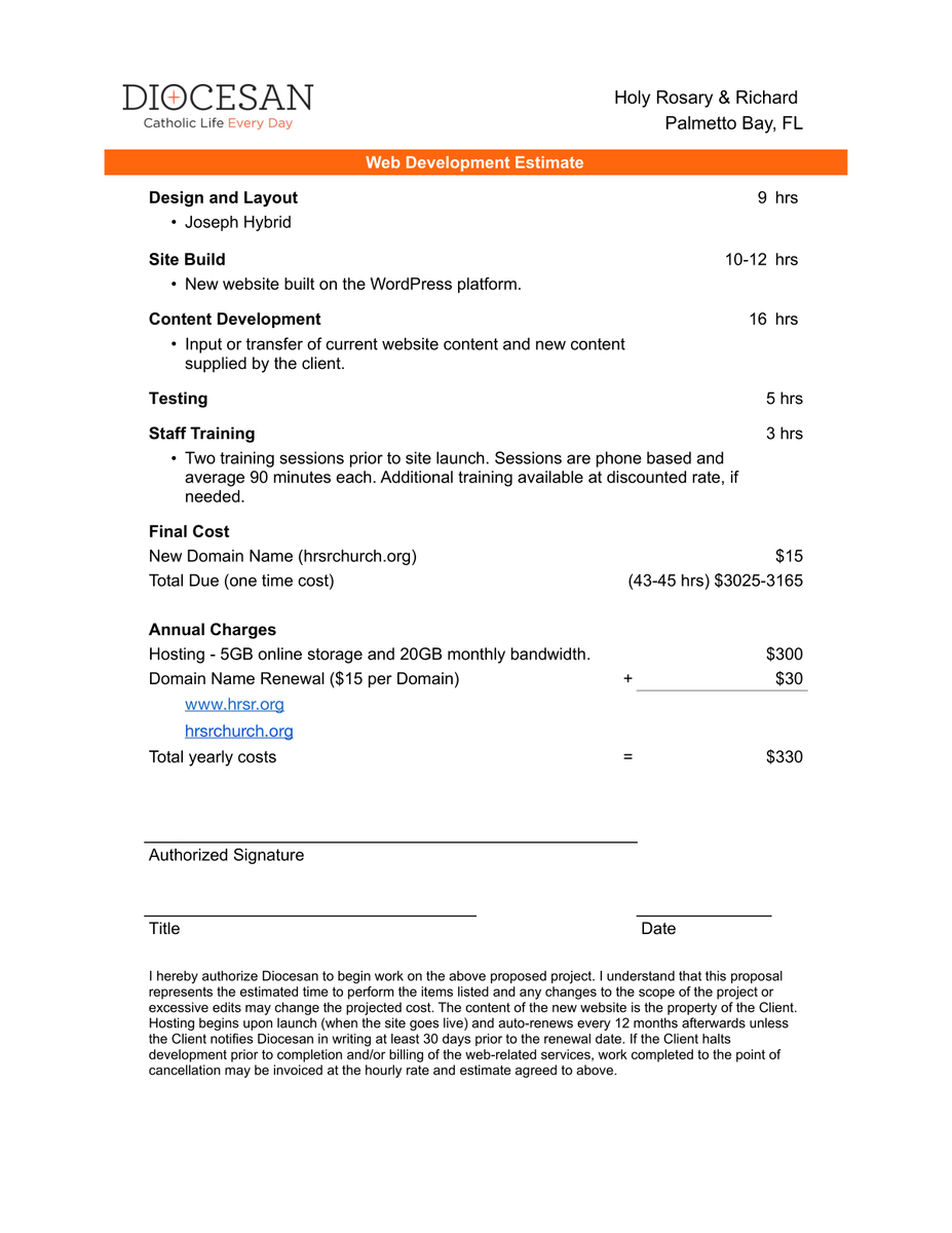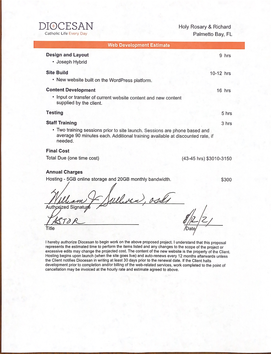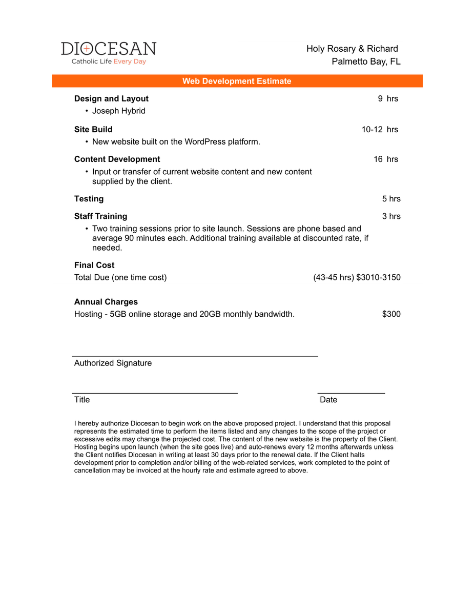 Thank you for your patience as we worked to update the proposal for just the parish website.