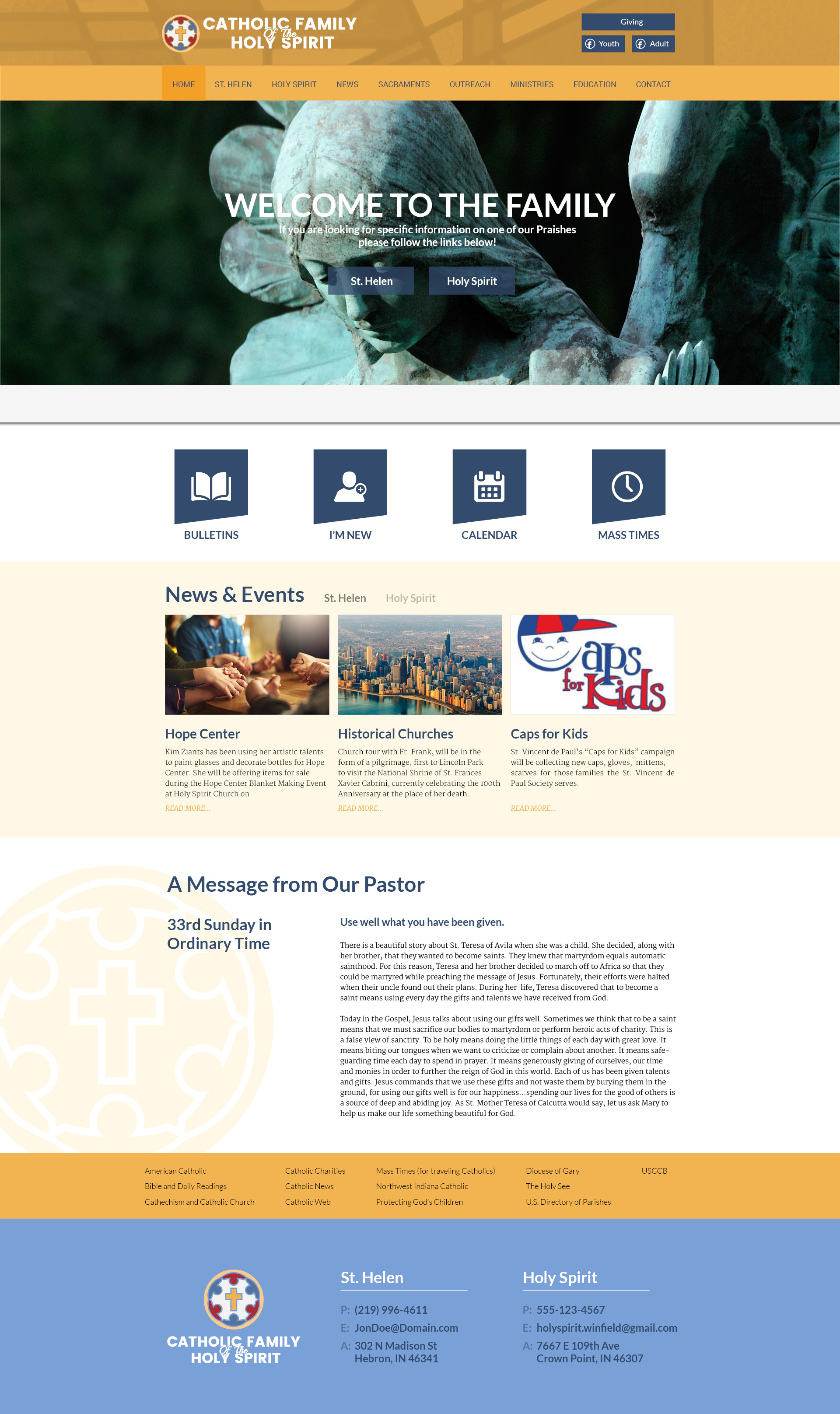 We like the additions made to the logo and to the Home Page. The alternating colors of the people in the logo is especially effective. The welcome to the family stands out in a very positive way. It conveys strongly our desire as 2 parishes to be inviting and welcoming.