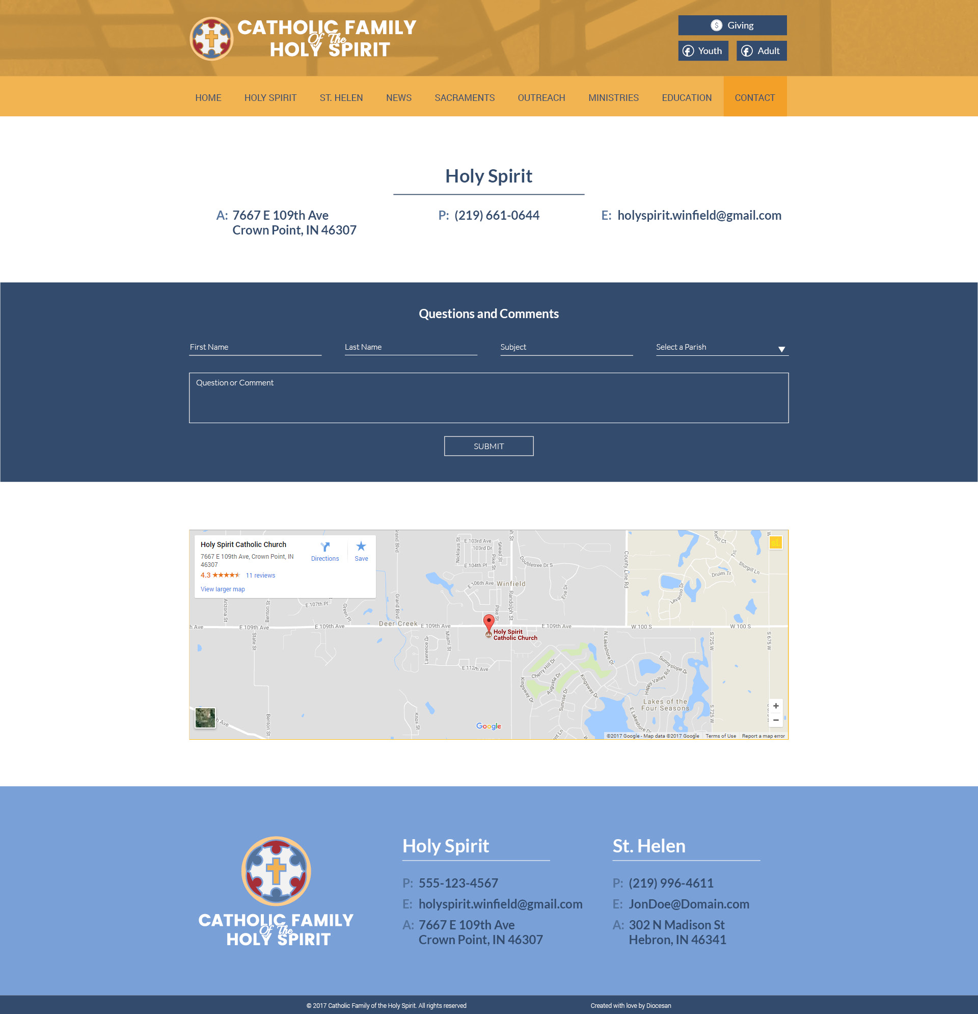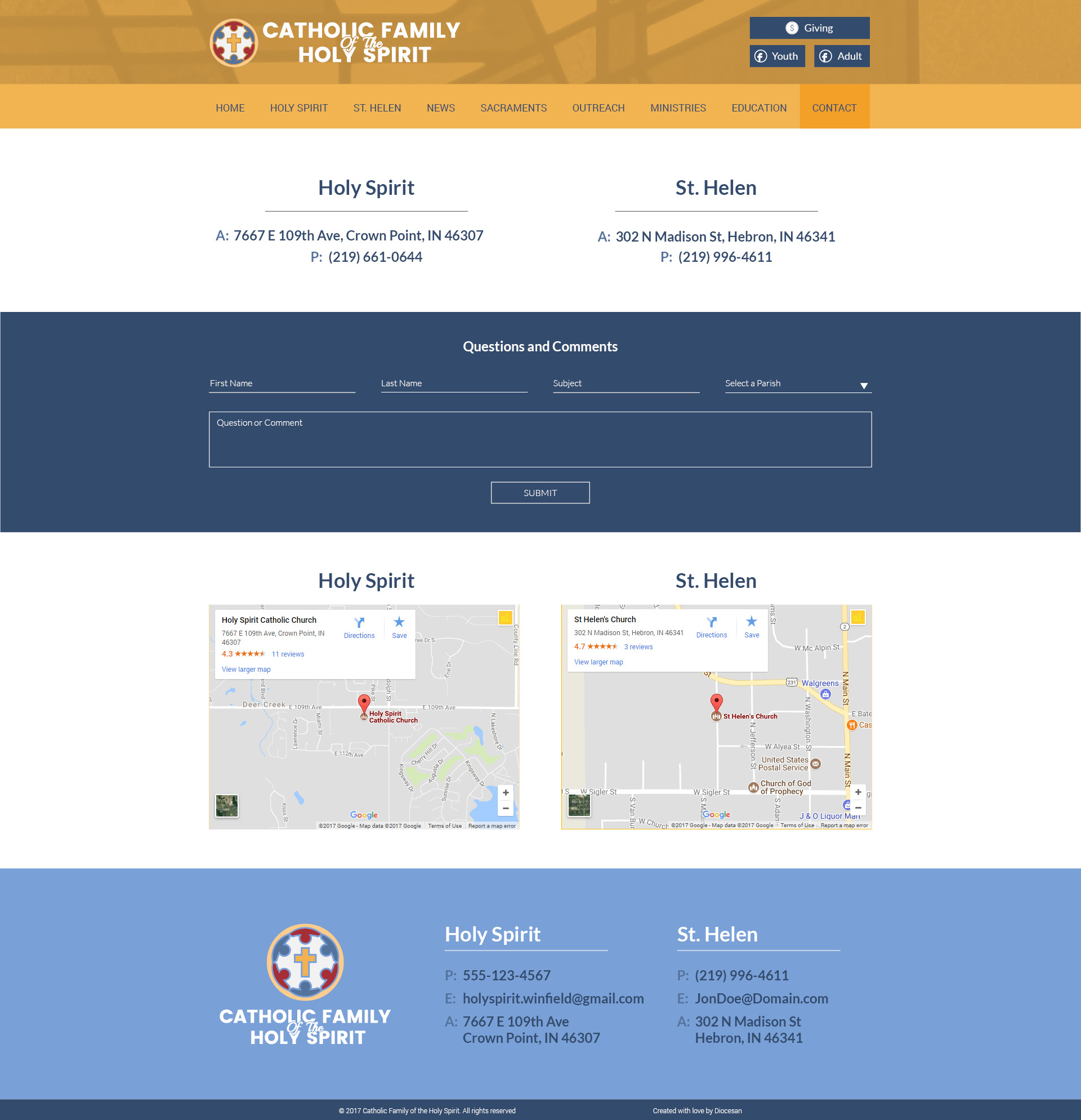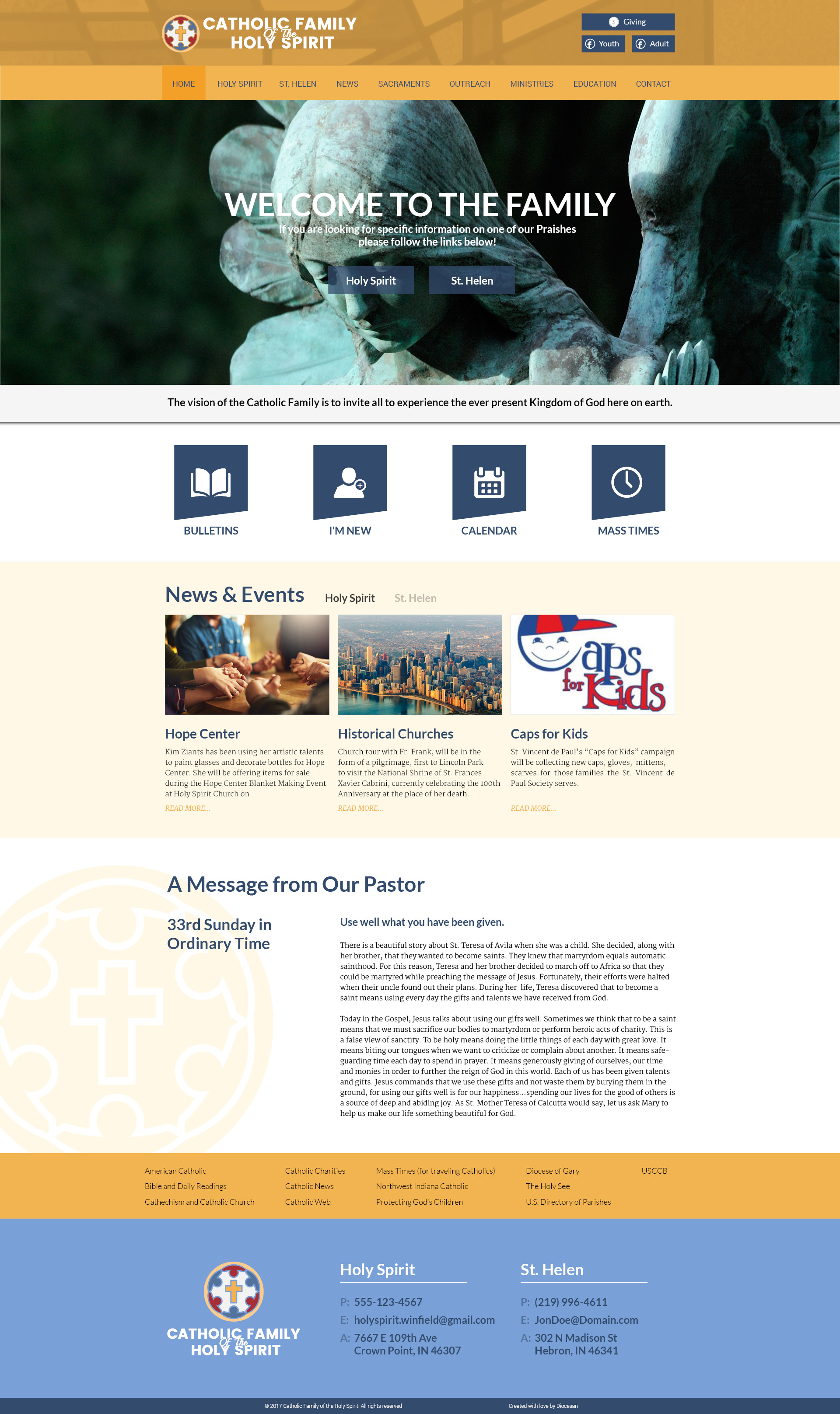 Generally, I like the whole design. My question is about the appearance of the page vs the feeling we are 2 parishes equally sharing the same site. How easy from an appearance standpoint will it be to navigate between the 2 parishes?