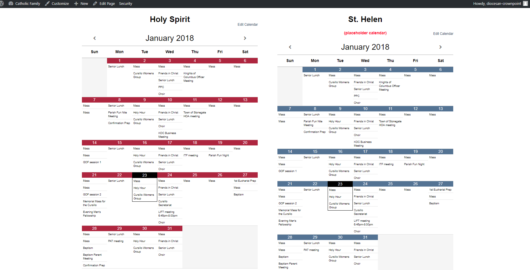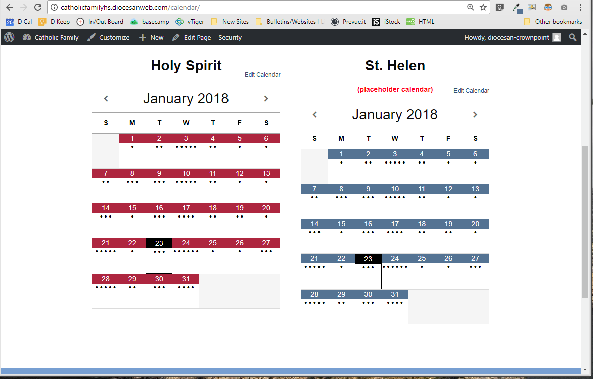 - Calendar is showing with dots, not full calendar with events (could also be an issue for parishioners with smaller screens)