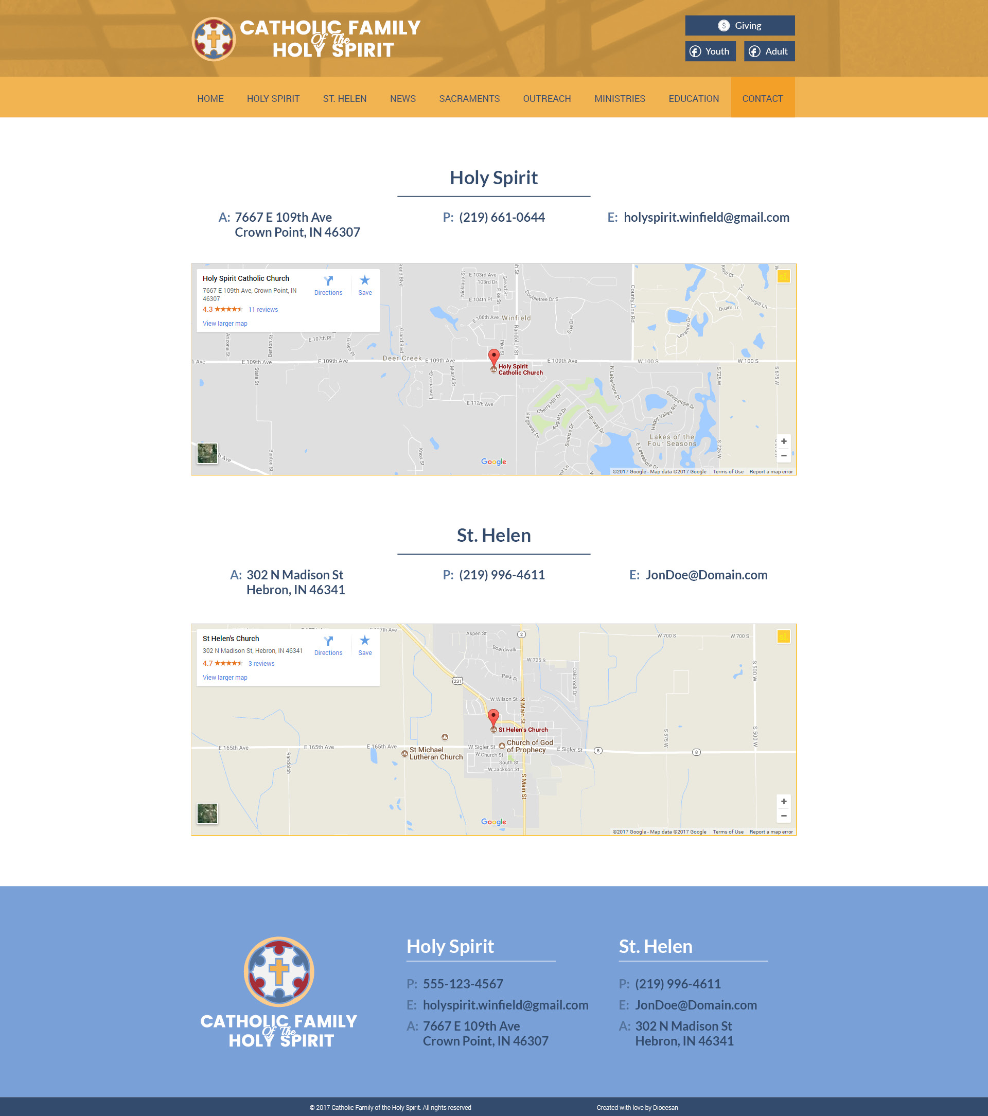 Contact Page (with both phone, email, and address and map showing the location for viewers)