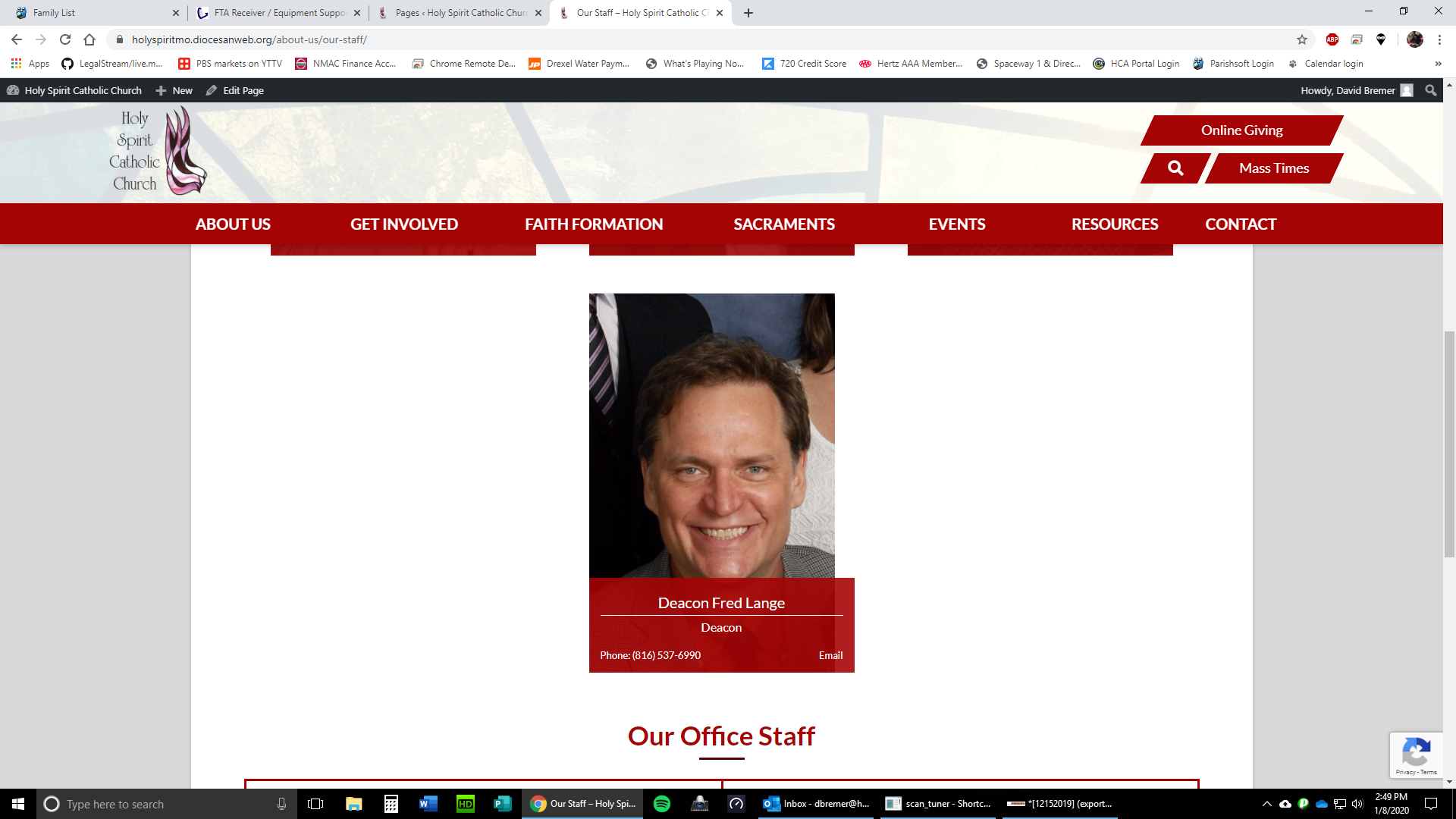 I have added Deacon Rich Akins to the Staff List as the Pastoral Coordinator. I did this by going to the Staff Members in the WordPress Menu and then adding a new staff member inputting the same information in his other listing and changing the Title to Pastoral Coordinator and then categorizing this separate one as Office Staff instead of Clergy. If they are Office Staff, they will show in the Table whereas Clergy will show with the pictures.
