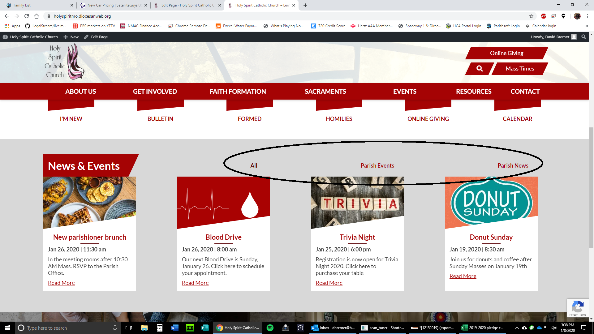 1. Remove the words "All," "Parish Events" and "Parish News" from the front page