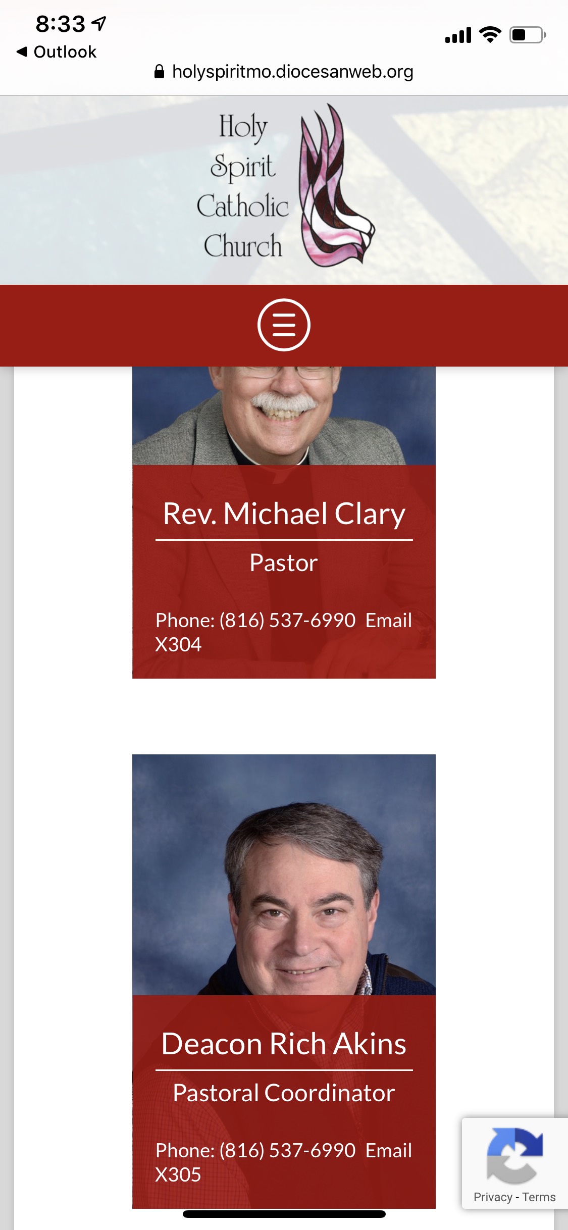 I still have some concerns about the mobile version of the site; some pages have elements that are off center. The staff page clergy faces are obscured by the red gradient box.