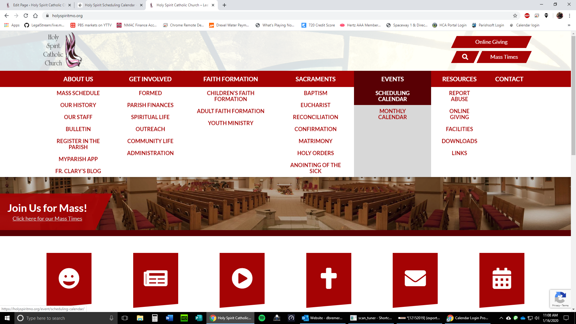 We do not have the Google Calendar ID for the parish's main website calendar, only the faith formation calendars. Once you provide us with the ID, we will update the Calendar featured button and the homepage calendar to display Holy Spirit's events. - Is all the content moved over?