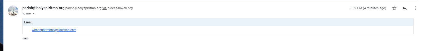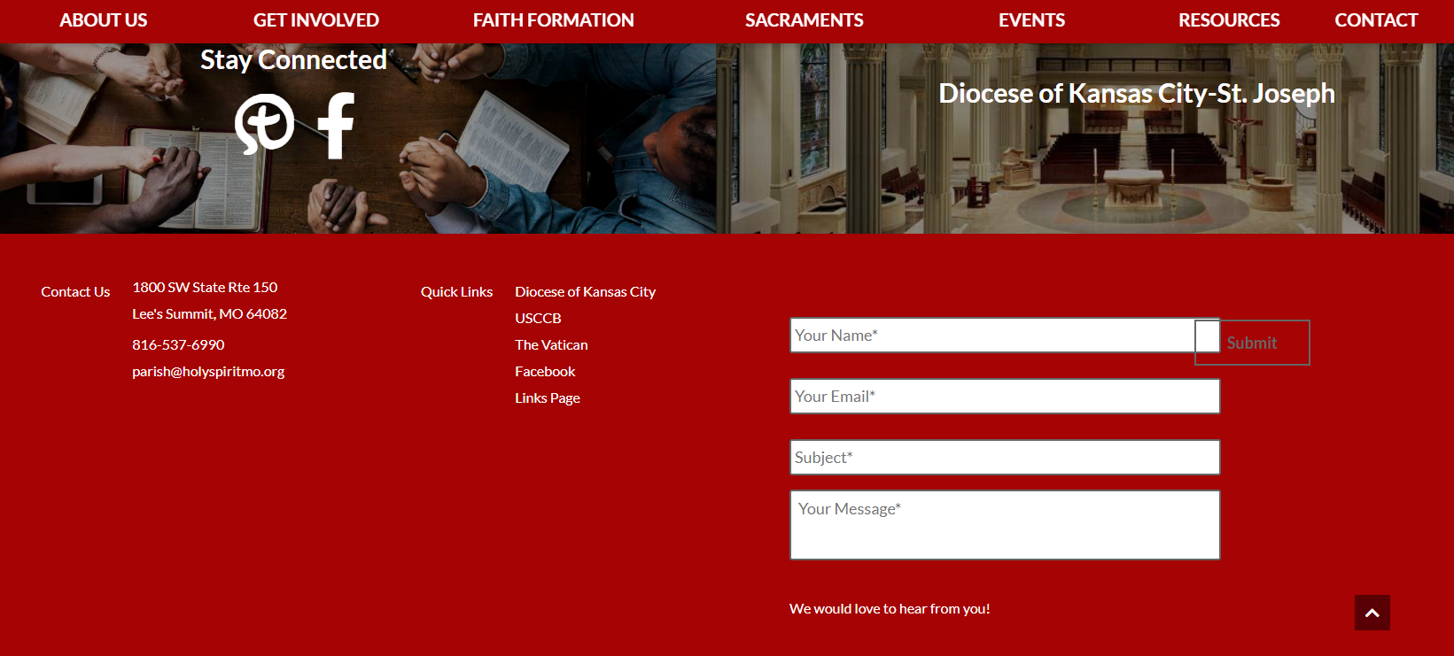 Cody, what I mean is, on the main page if you plug your email into the “We would like to hear from you” box, all it does is send a blank email to parish@holyspiritmo.org<mailto:parish@holyspiritmo.org> – it doesn’t give the user a chance to write why they are contacting. If that makes sense.
