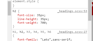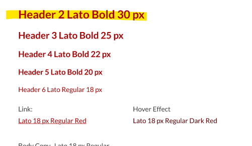 Please change h2 to be 30px font-size and 36px line-height and change h5 to be 700 font-weight. Thanks.