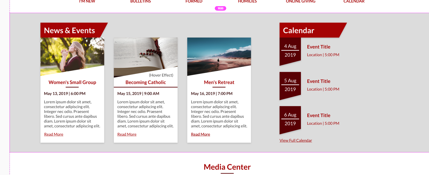 ✔ Homepage - News & Events - separator color should be #590004 instead of the current color.