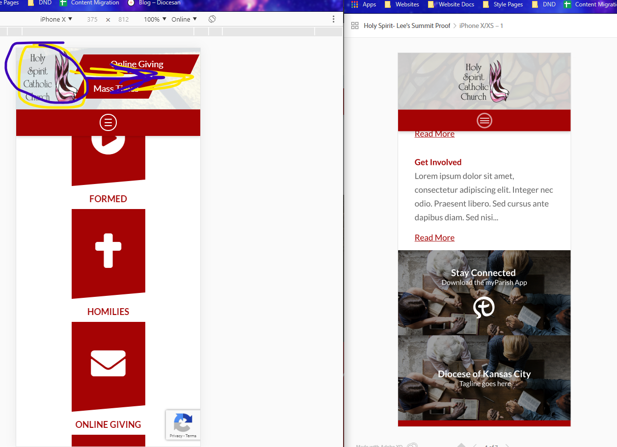 ✔ Mobile - Header - When the Header buttons go away, the logo should come to the middle to stay