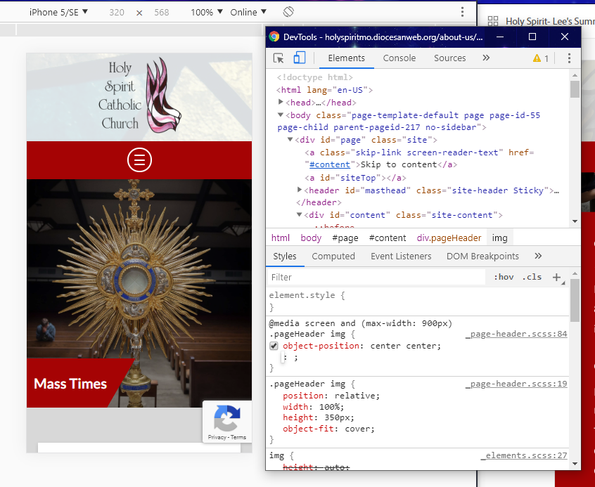 ✔ Mobile - Page - Header - Featured Image should be object-position: center center instead of object-position: 0;