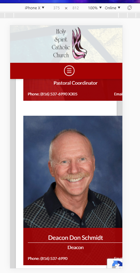 The staff member boxes are going outside the main content area. No matter what they say, they should and can be contained. Thanks. https://holyspiritmo.diocesanweb.org/about-us/our-staff/