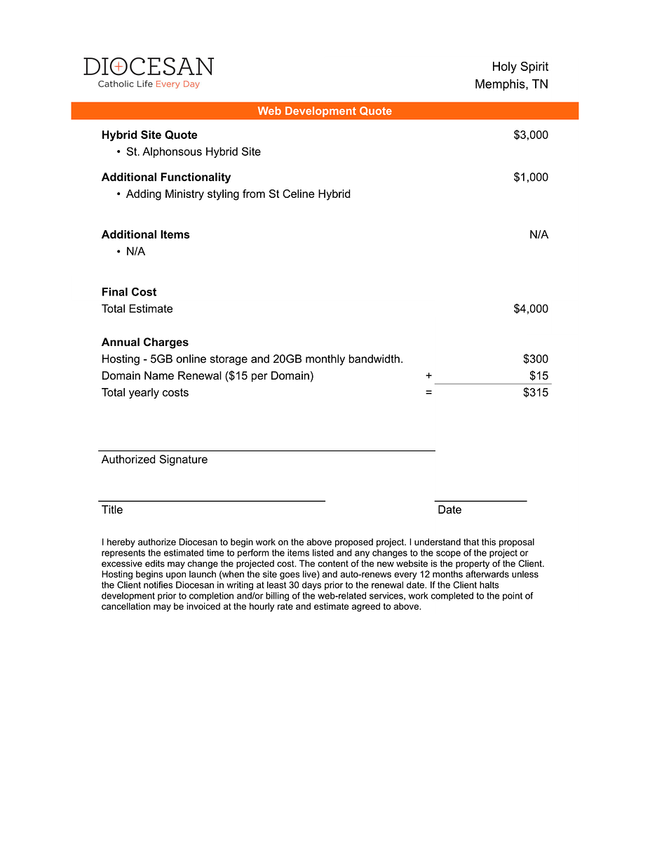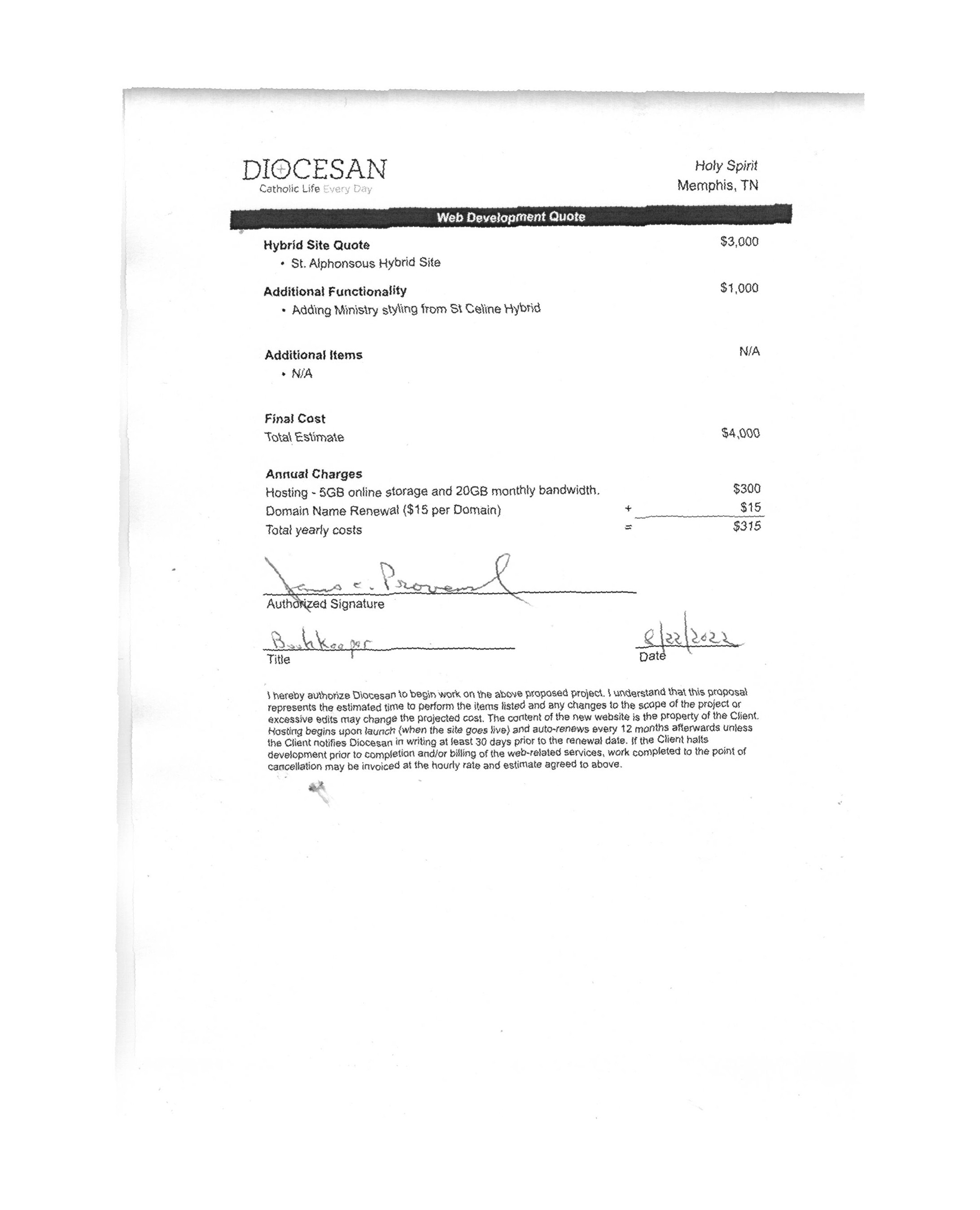 Thank you for your patience as I worked to finalize the proposal for the new parish website.