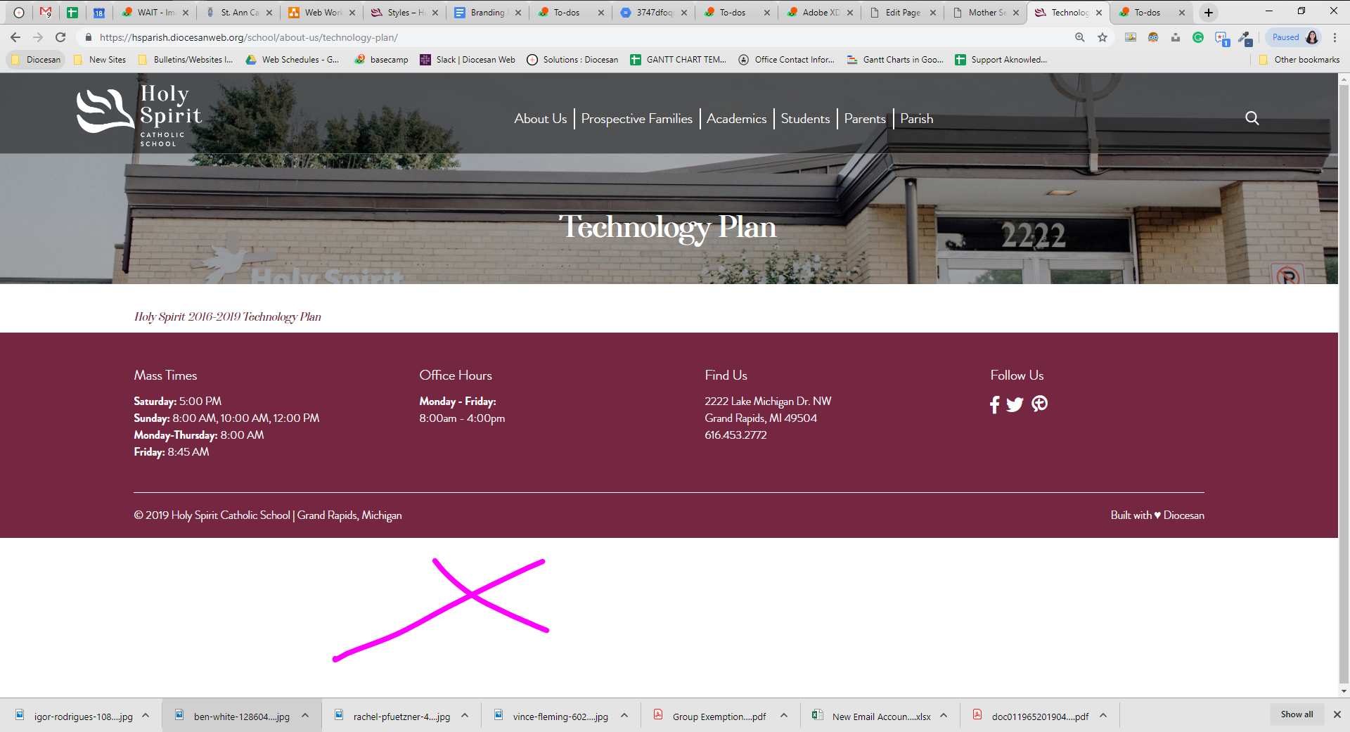 From the list: Build ✔ Footer should stay at bottom of page/page should have minimum height? Veronica A. added this on Apr 18, 2019 Completed Apr 18, 2019 by Kyle B. Assigned to Kyle B. Notes https://hsparish.diocesanweb.org/school/about-us/technology-plan/ image.png 865 KB • Download Comments & Events Kyle Brown completed this to-do. Apr 18, 2019 at 6:02 PM