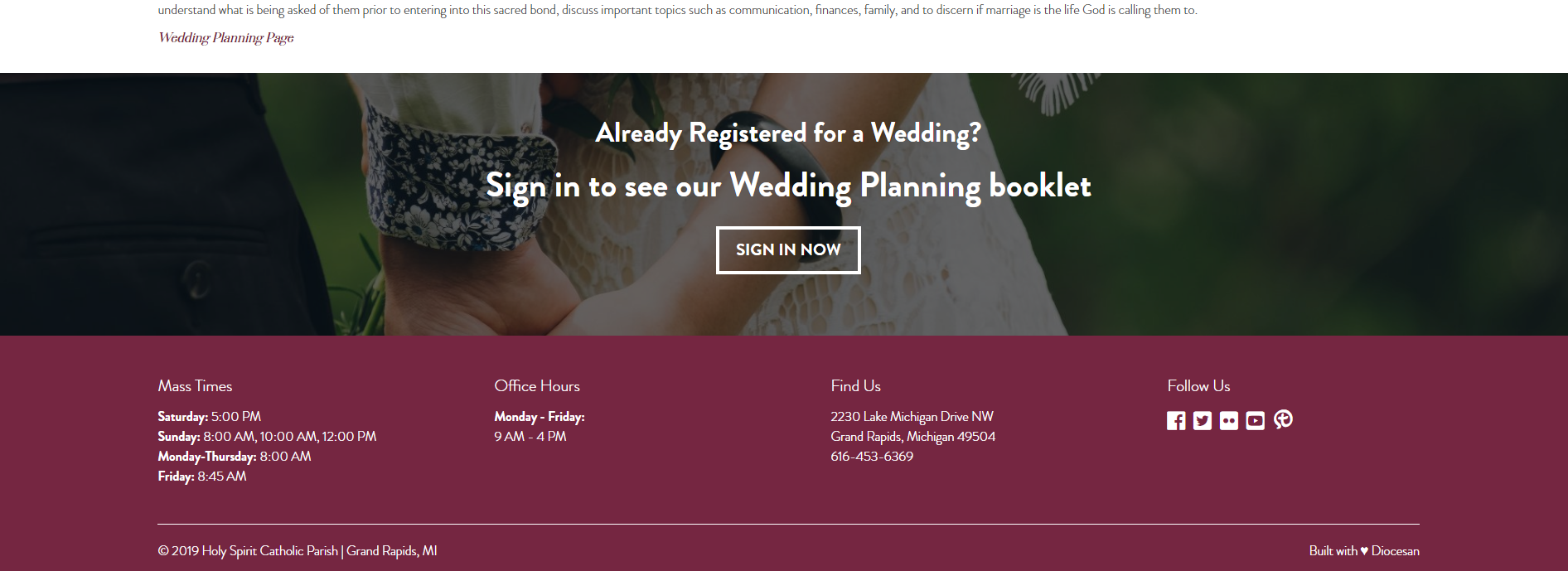 From the list: Content ✔ recreate wedding banner Veronica A. added this on Apr 18, 2019 Completed Aug 05, 2019 by Veronica A. Assigned to Veronica A. Notes https://hsparish.diocesanweb.org/sacraments/marriage-2/https://hsparish.diocesanweb.org/wedding-login/ image.png 593 KB • Download Comments & Events Veronica Alvarado completed this to-do. Aug 05, 2019 at 5:35 PM