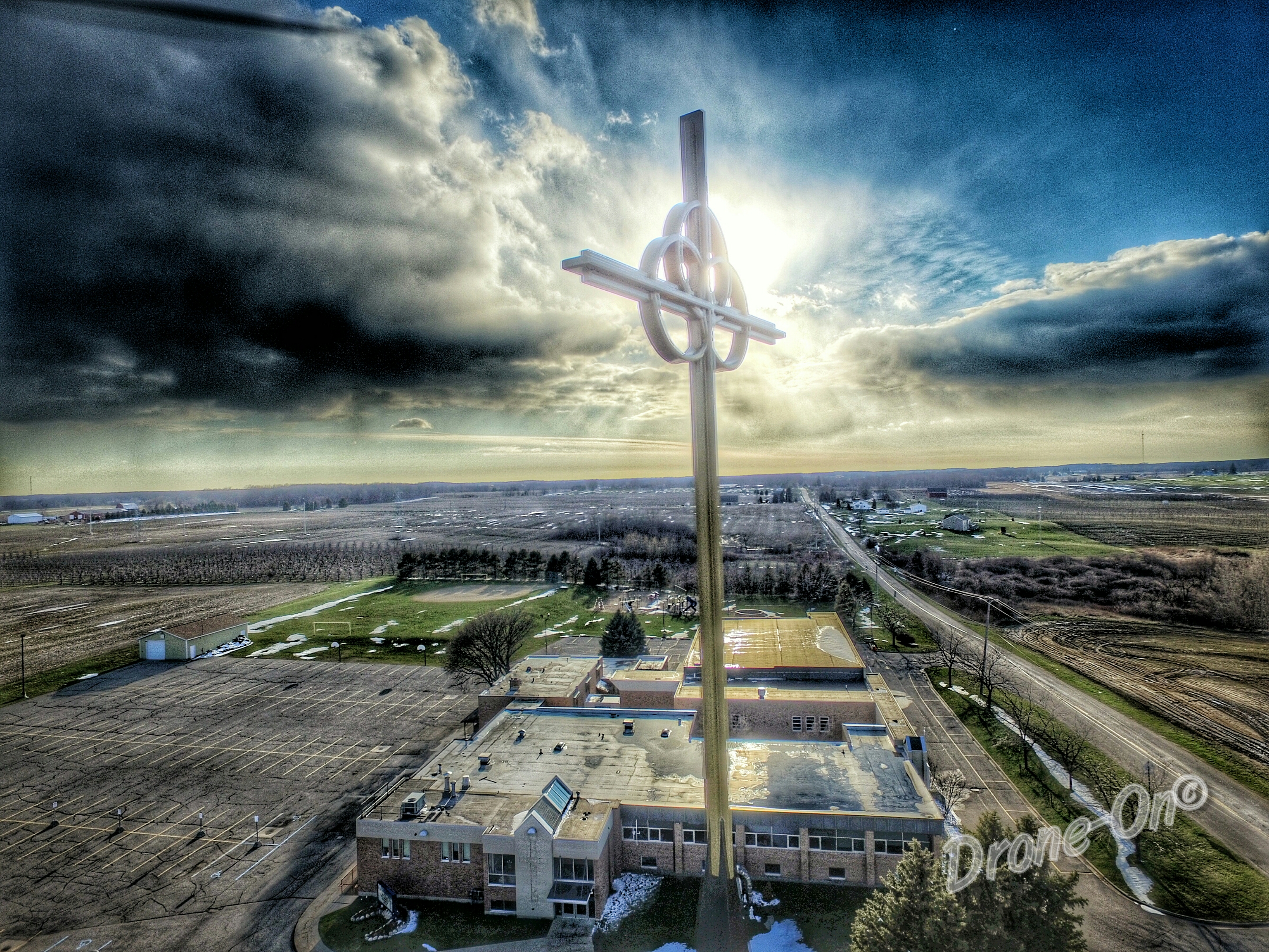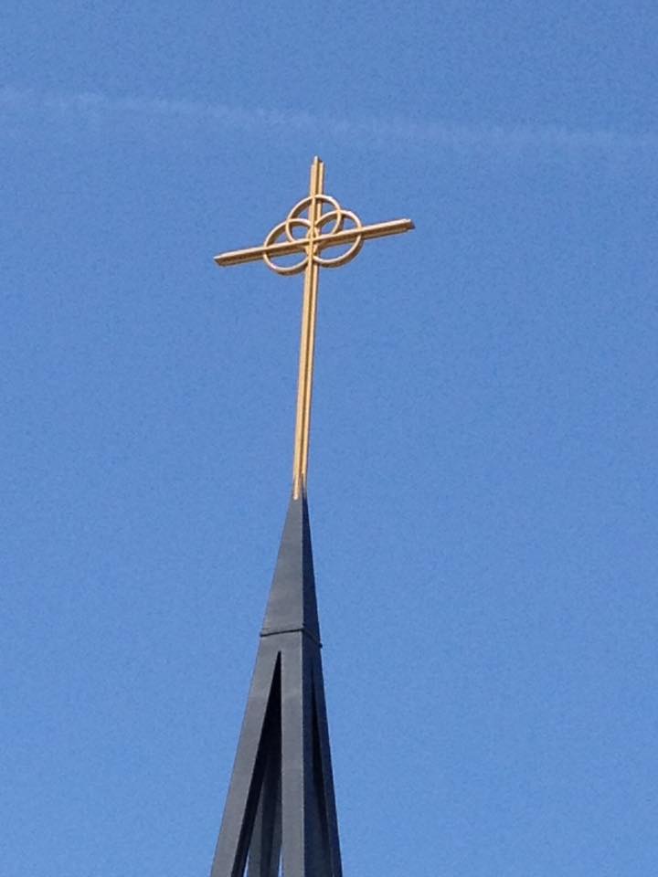 3. Viewing the cross at an angle, as if it's looking at the name of the parish.