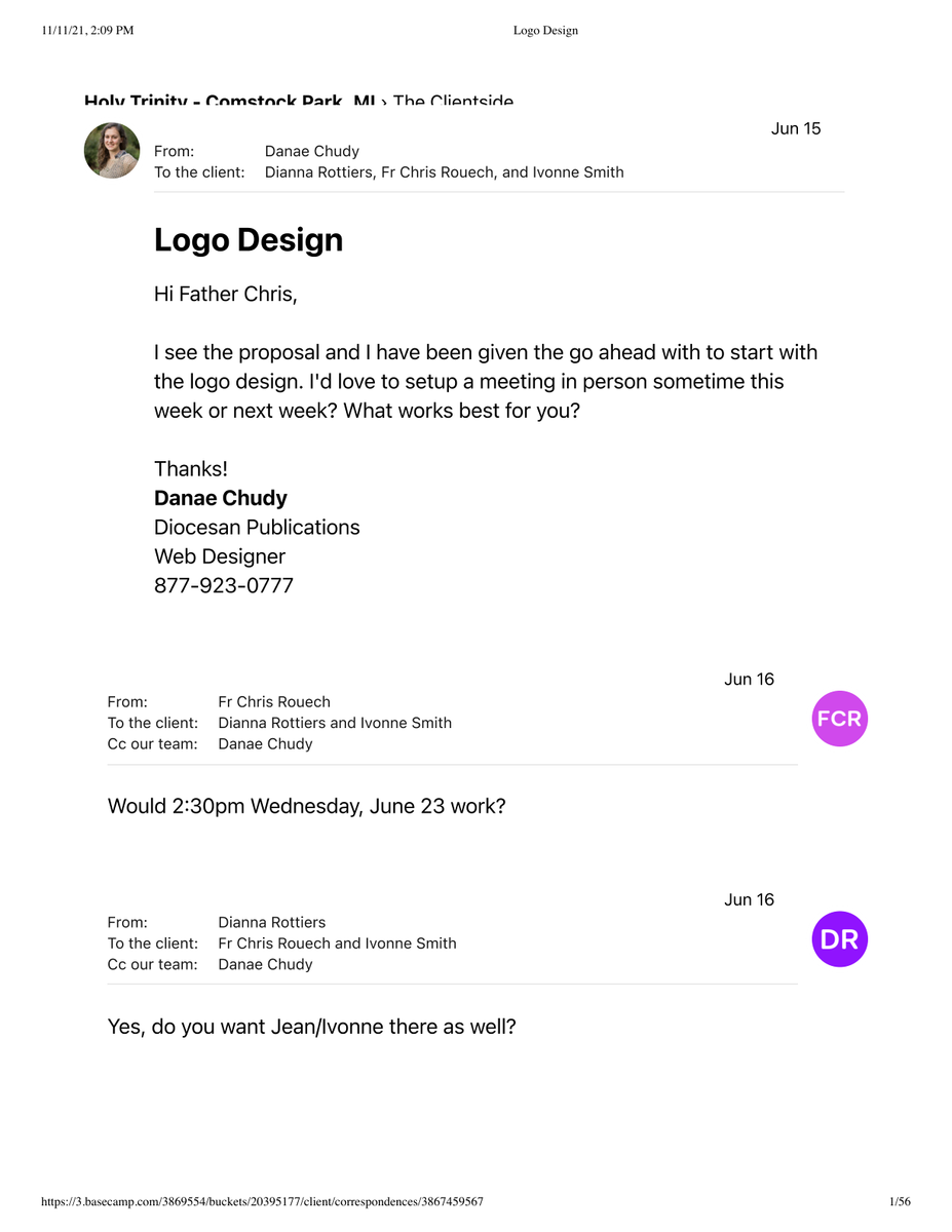 To respond, just reply to this email. View all your conversations about Holy Trinity - Comstock Park, MI in Basecamp (https://clients.3.basecamp.com/c/rqgJy8LSg3c5z9WZXFUYvSfb?p=BAh7CEkiCGdpZAY6BkVUSSIpZ2lkOi8vYmMzL1BlcnNvbi8zNDU2OTQwMT9leHBpcmVzX2luBjsAVEkiDHB1cnBvc2UGOwBUbzoNR2xvYmFsSUQGOglAdXJpbzoNVVJJOjpHSUQSOgxAc2NoZW1lSSIIZ2lkBjsARjoKQHVzZXIwOg5AcGFzc3dvcmQwOgpAaG9zdEkiCGJjMwY7AFQ6CkBwb3J0MDoKQHBhdGhJIh8vQ2xpZW50OjpBZG1pdHRhbmNlLzMxODAzMwY7AFQ6C0BxdWVyeTA6DEBvcGFxdWUwOg5AZnJhZ21lbnQwOgxAcGFyc2VyMDoQQG1vZGVsX25hbWVJIhdDbGllbnQ6OkFkbWl0dGFuY2UGOwBUOg5AbW9kZWxfaWRJIgszMTgwMzMGOwBUOgxAcGFyYW1zMEkiD2V4cGlyZXNfYXQGOwBUMA%3D%3D--8ce14c2c880fb0eb599311e20e40887a95115312). This message was sent to Danae Chudy, Dianna Rottiers, Fr Chris Rouech, and Ivonne Smith.