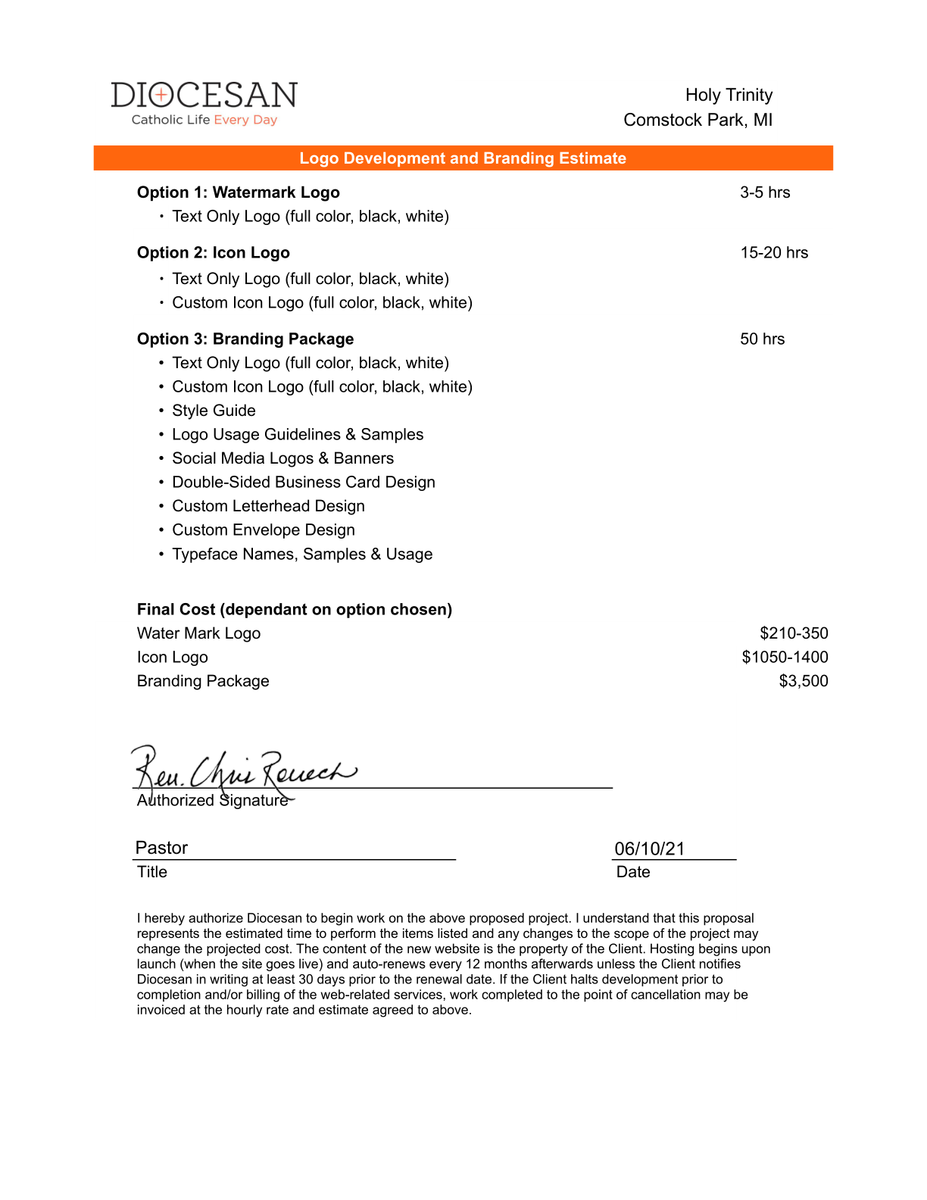 Please find attached the signed contract for the logo and branding. At last! Please be sure any invoices are sent directly to me.