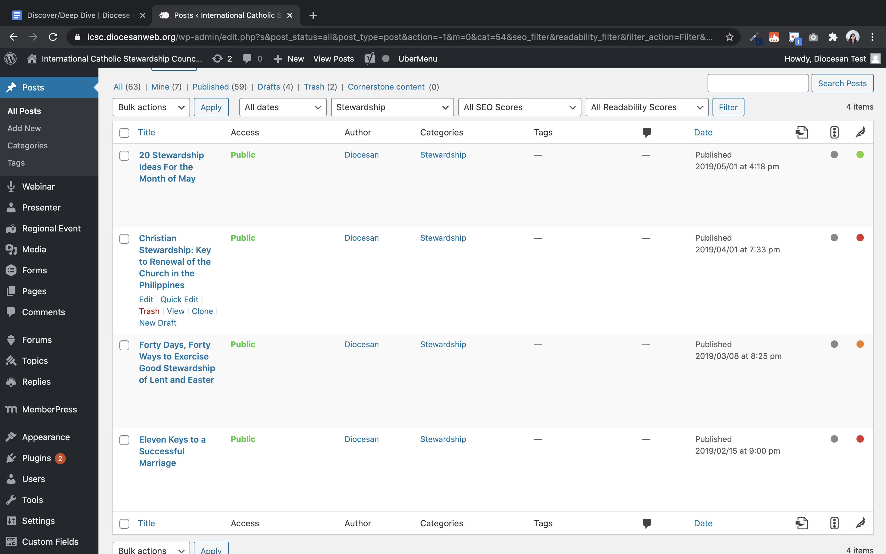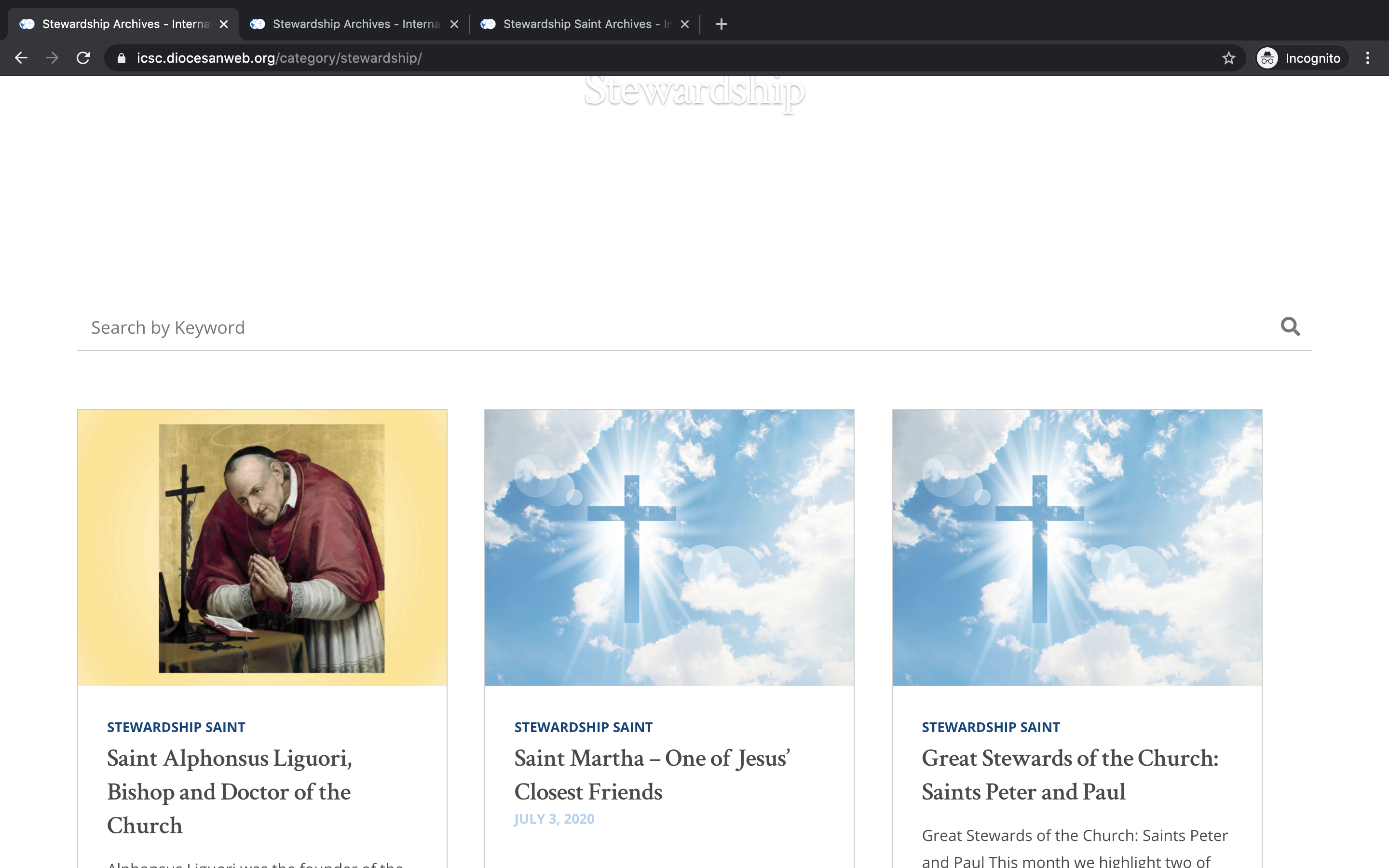 From the list: Other ✔ Posts Category Archive all shows all posts instead of just the category posts Veronica A. added this on Sep 01, 2020 Completed Sep 01, 2020 by Ryan R. Assigned to Ryan R. Notes https://icsc.diocesanweb.org/category/stewardship/ Screen Shot 2020-09-01 at 1.12.37 PM.png 507 KB • Download Screen Shot 2020-09-01 at 1.16.07 PM.png 1.31 MB • Download Comments & Events Ryan Ross, Developer Whoops. Looks like some wires got crossed and my archive.php file got overwritten with an older version.Fixed it now. Sep 01, 2020 at 6:08 PM Notified 1 person Ryan Ross completed this to-do. Sep 01, 2020 at 6:08 PM