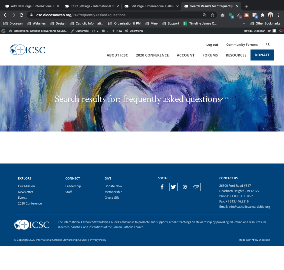 I tried clicking the search icon in the top corner and searched for "frequently asked questions" but nothing came up.