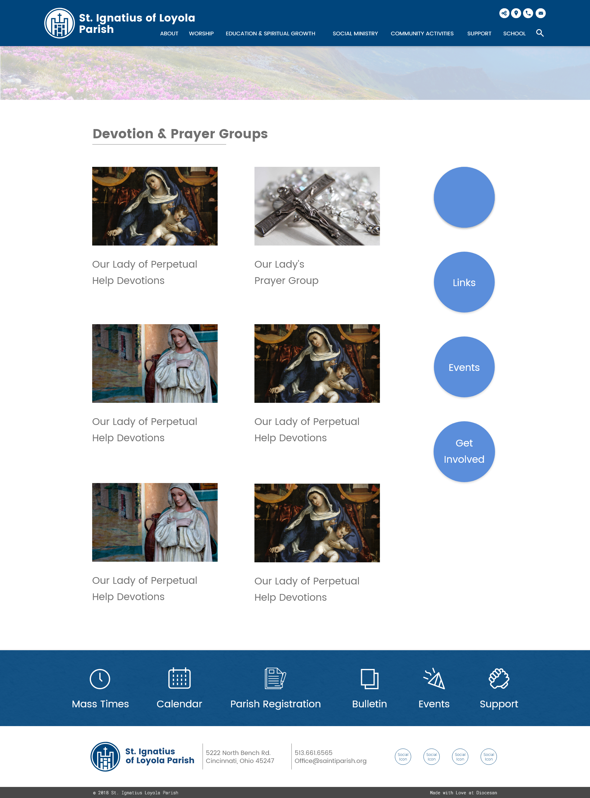 Photo galleries, mass alert page, nav. menu layout, and the hovering cap, etc.